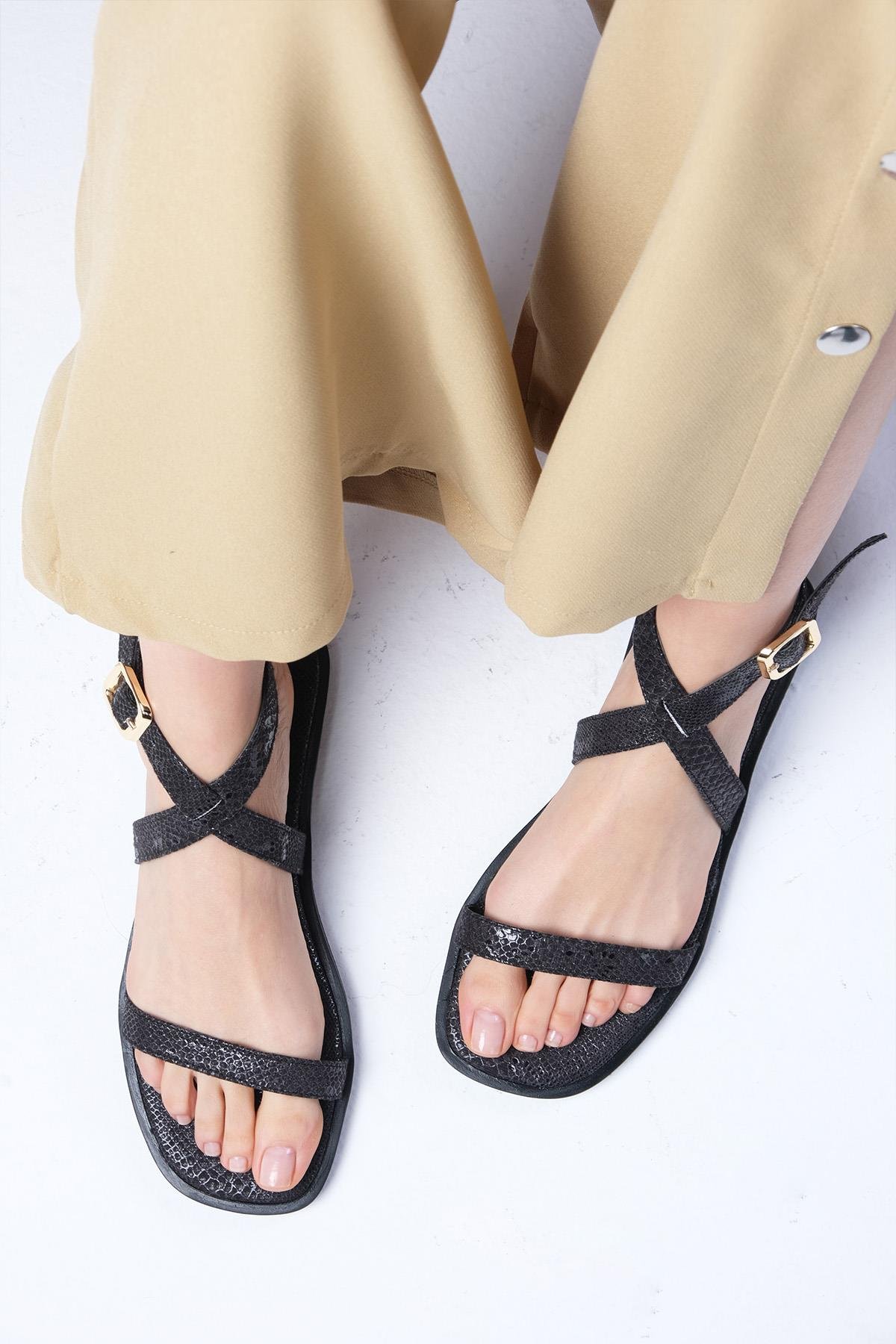 Arely Siyah Renk Düz Terlik (02354BLX)