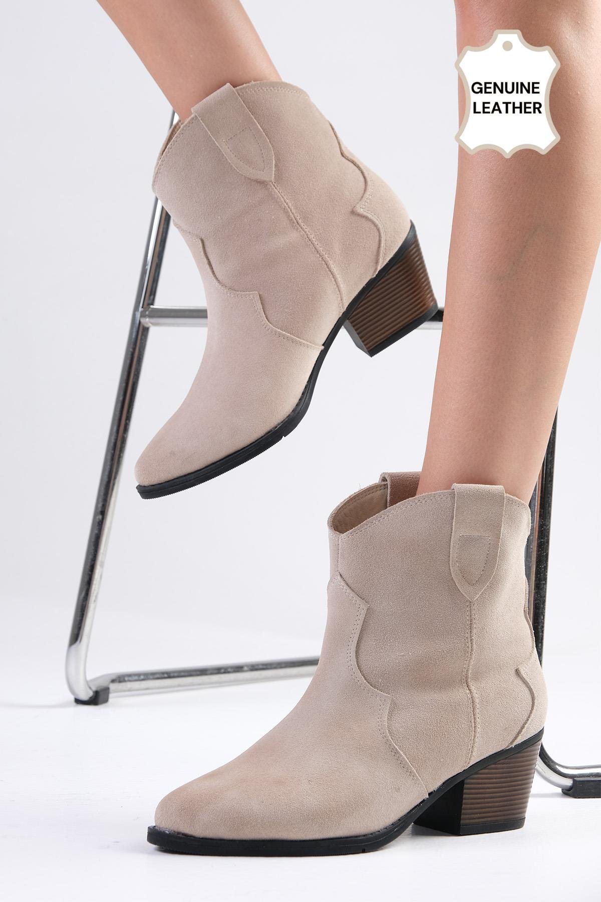 Becky Hakiki Süet Bej Renk Western Bot (05807BES)