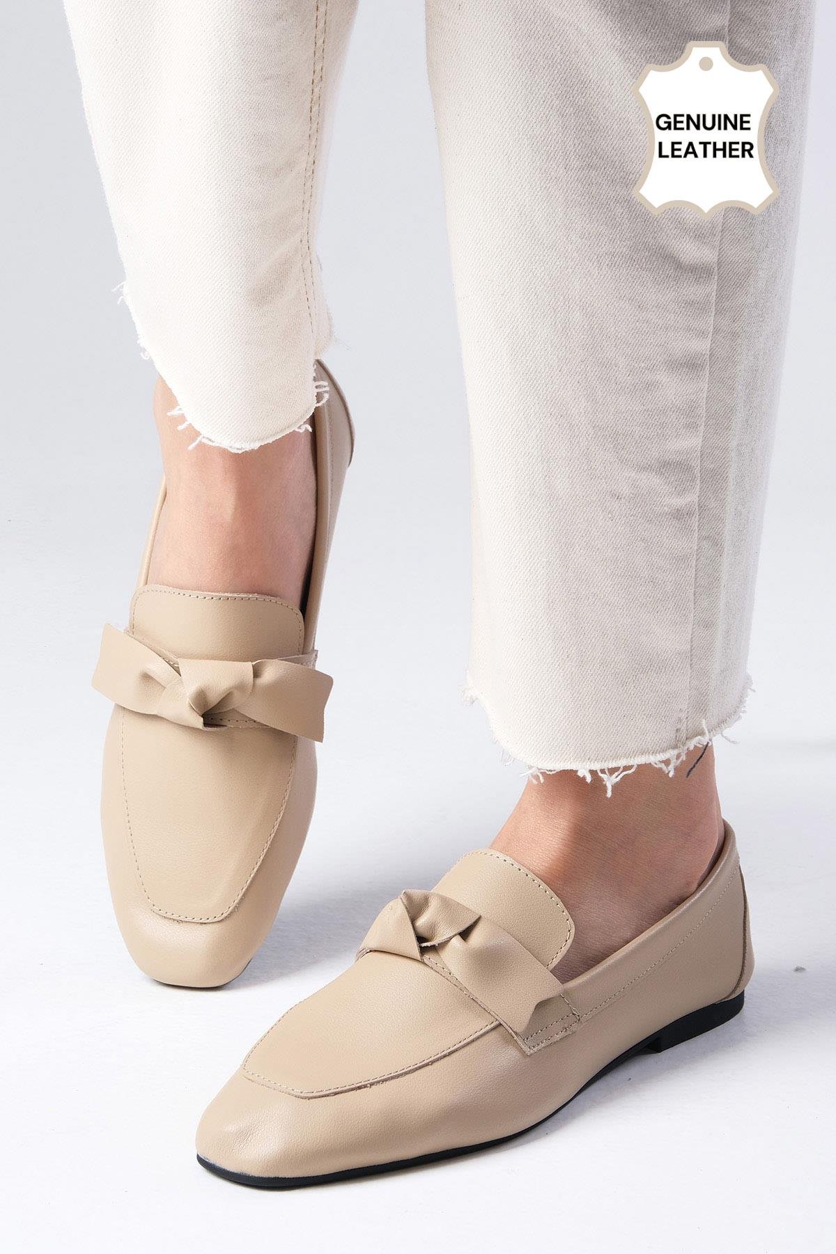 Candy Hakiki Deri Ten Rengi Fiyonk Aksesuarlı Loafer (01530NUC)