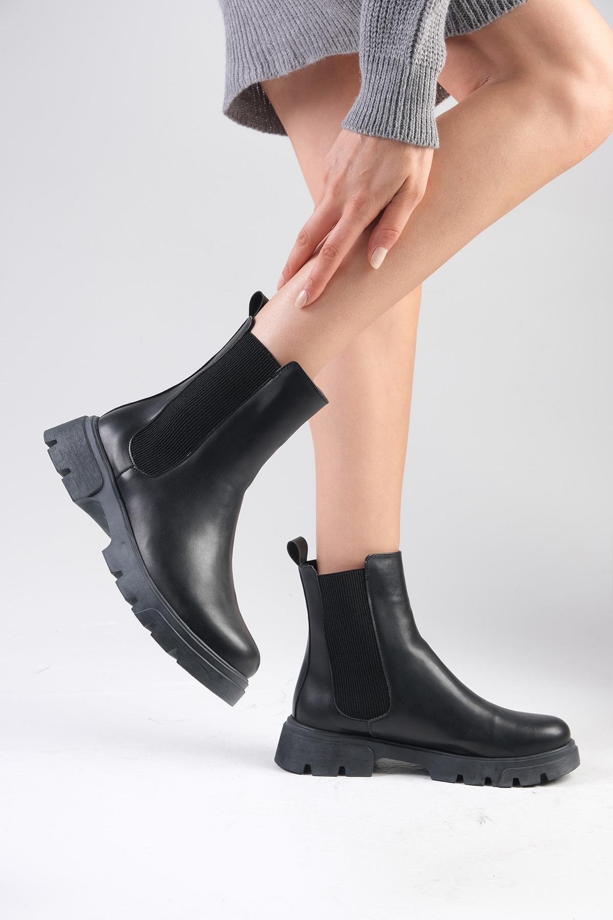 Debora Siyah Renk Kalın Tabanlı Lastikli Bot (01498BLC)