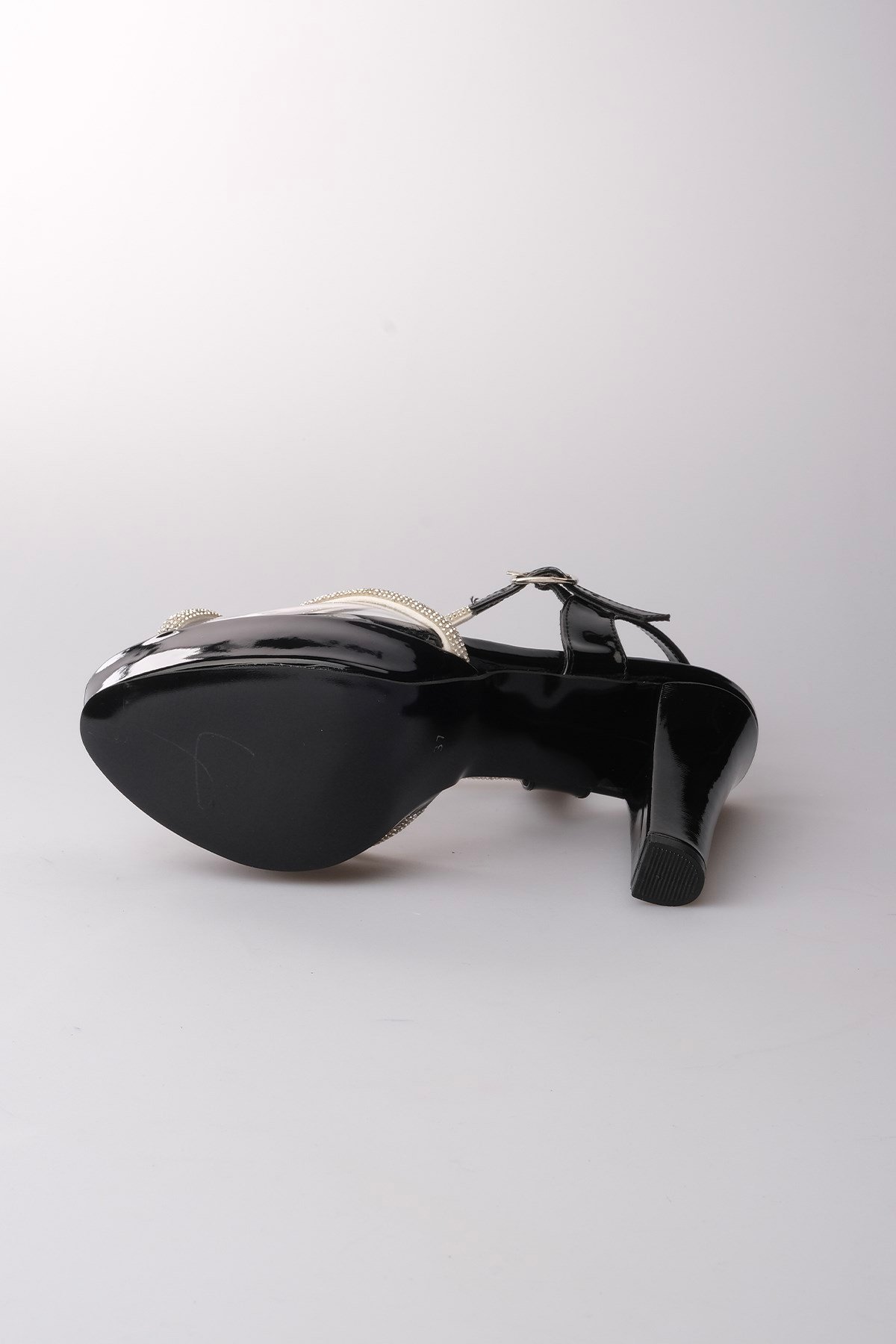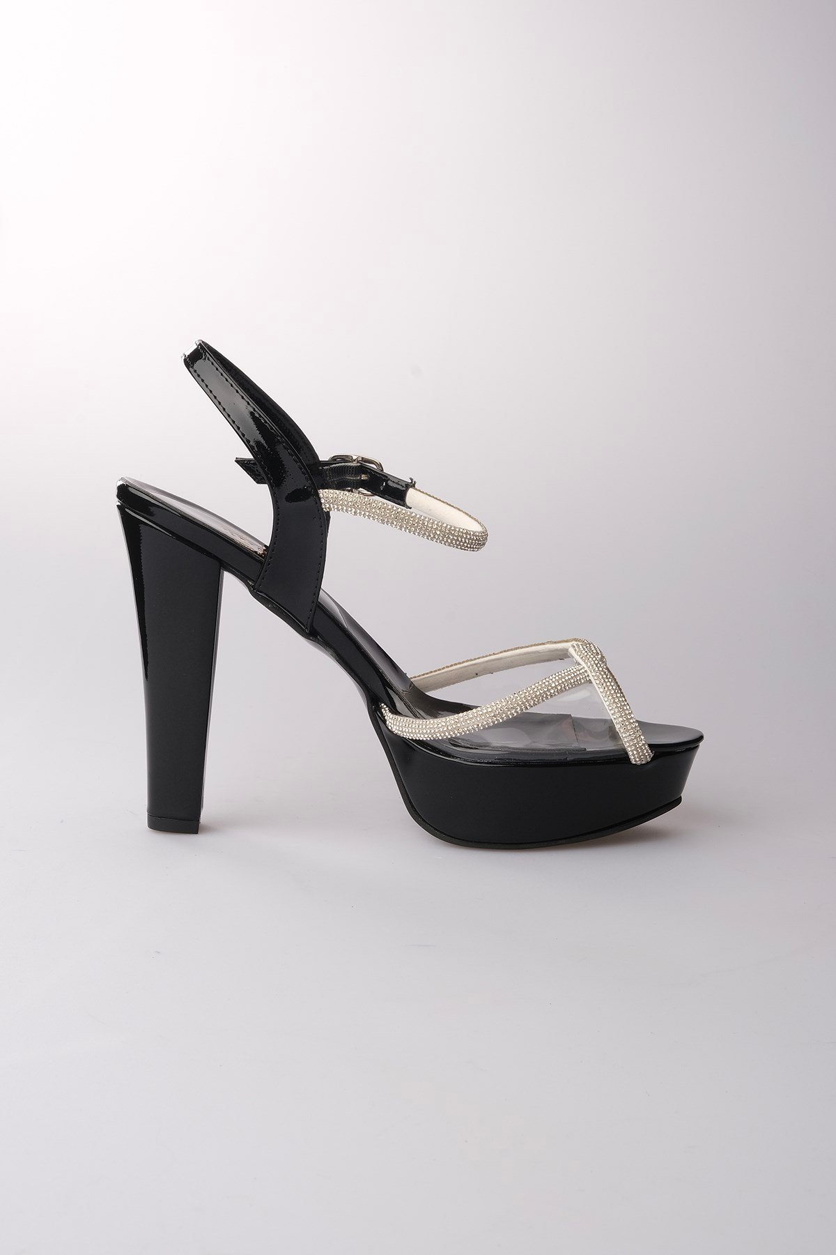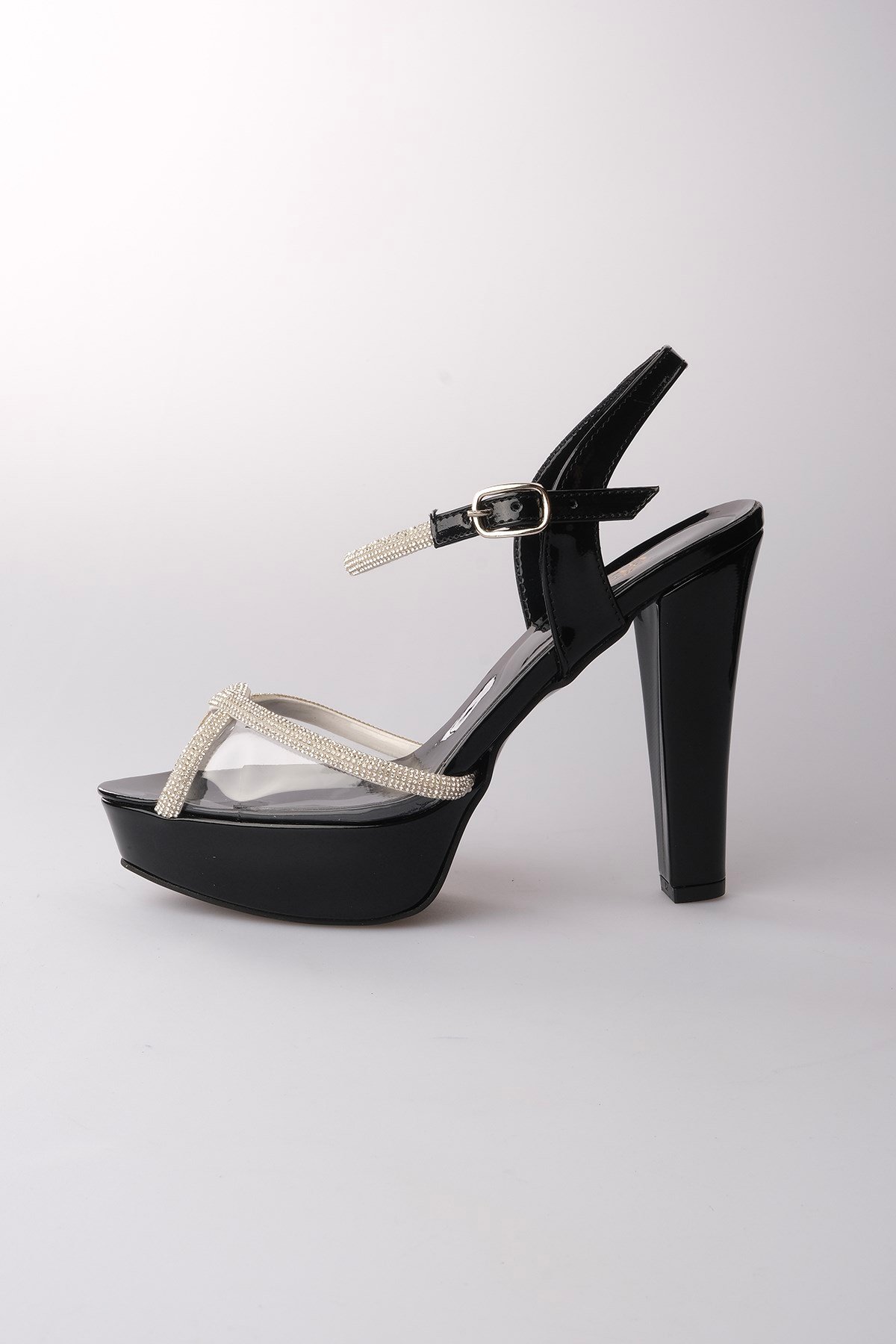 • Taşlı, Ayna Siyah Renk,Şeffaf Detaylı,Kadın Platformlu,Topuklu Abiye Ayakkabı