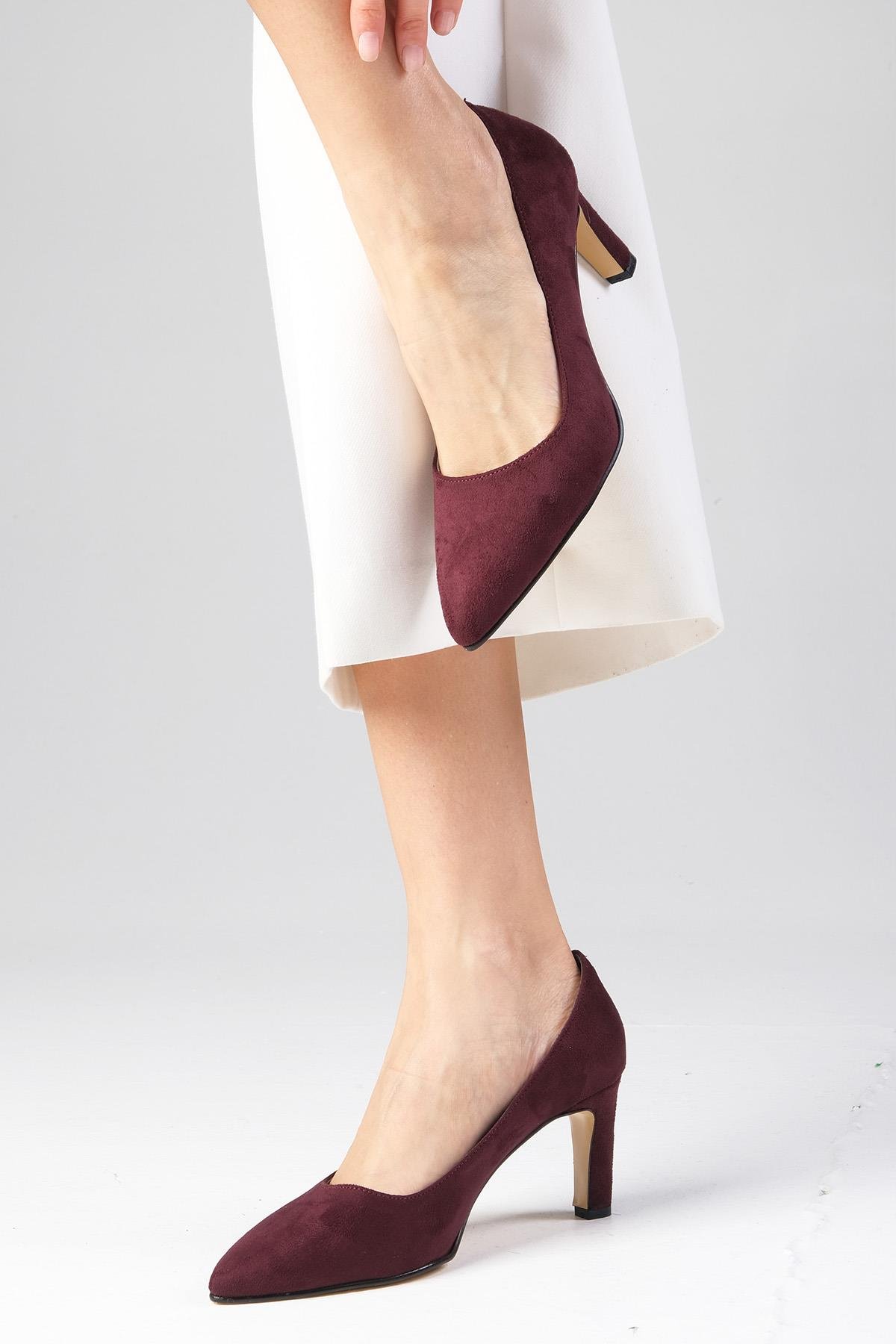 Lita Bordo Renk Süet Topuklu Ayakkabı (01252WRS)
