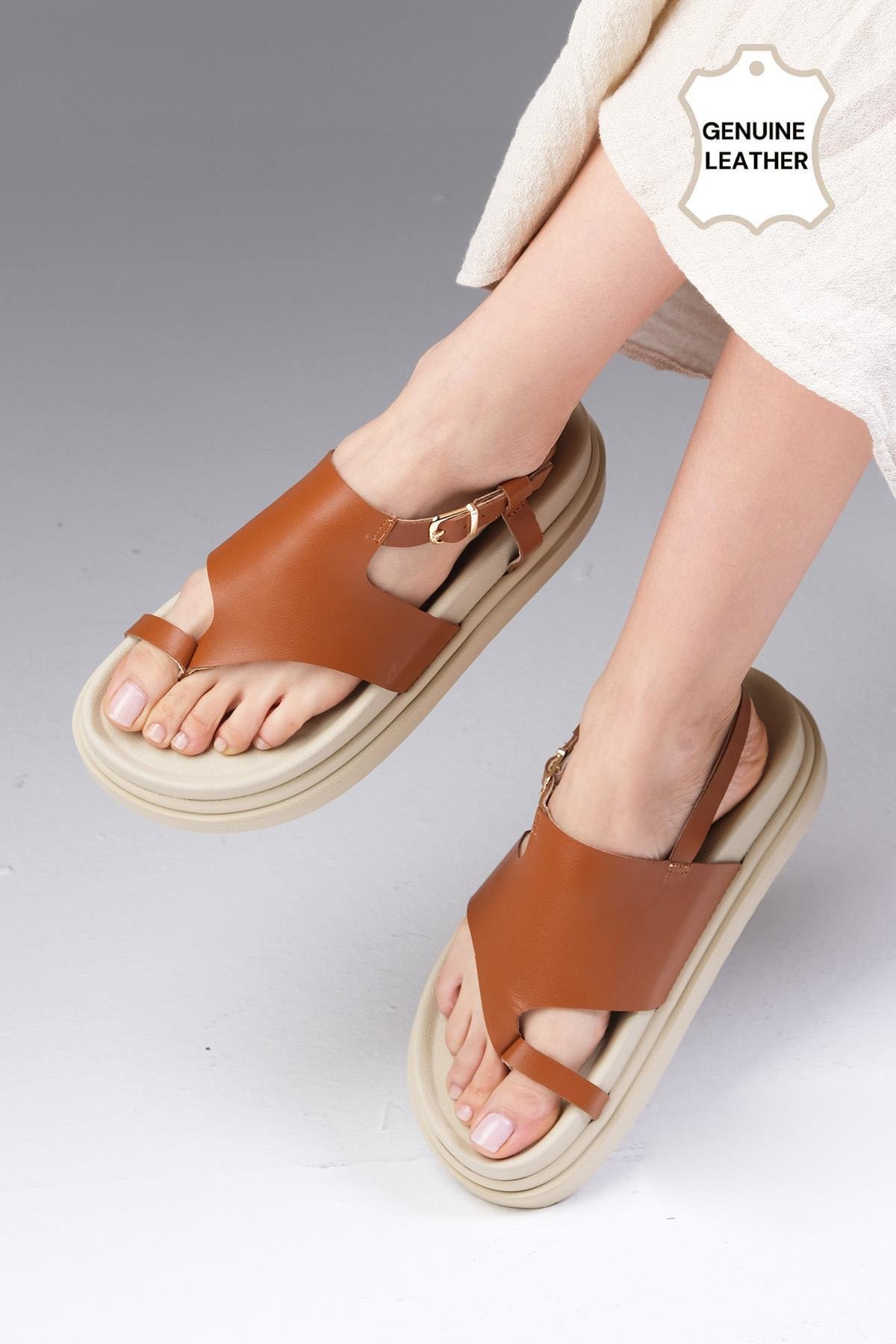 Lora Hakiki Deri Taba Renk Parmak Arası Sandalet (01610TAC)