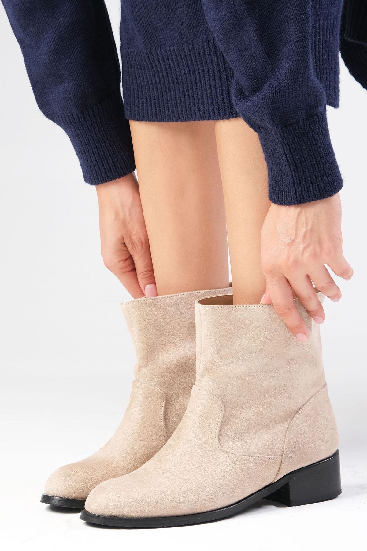 Marnie Bej Renk Süet Fermuarsız Bot (02322BES)
