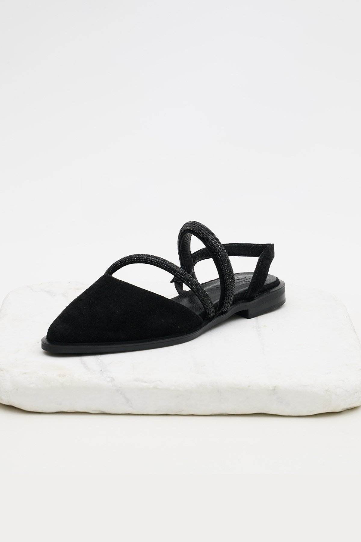 Poppy Hakiki Süet Siyah Çapraz Taş Atkılı Babet (08388BLS)