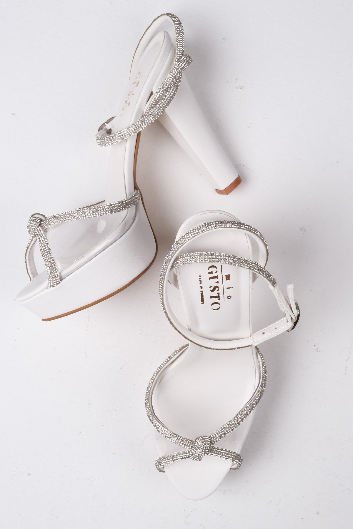 • Taşlı Beyaz Renk, Şeffaf Detaylı, Kadın Platformlu,Topuklu Abiye Ayakkabı