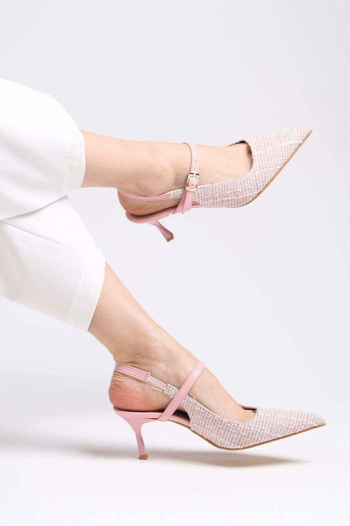 Tamara Pudra Renk Kumaş Topuklu Ayakkabı (01442POK)