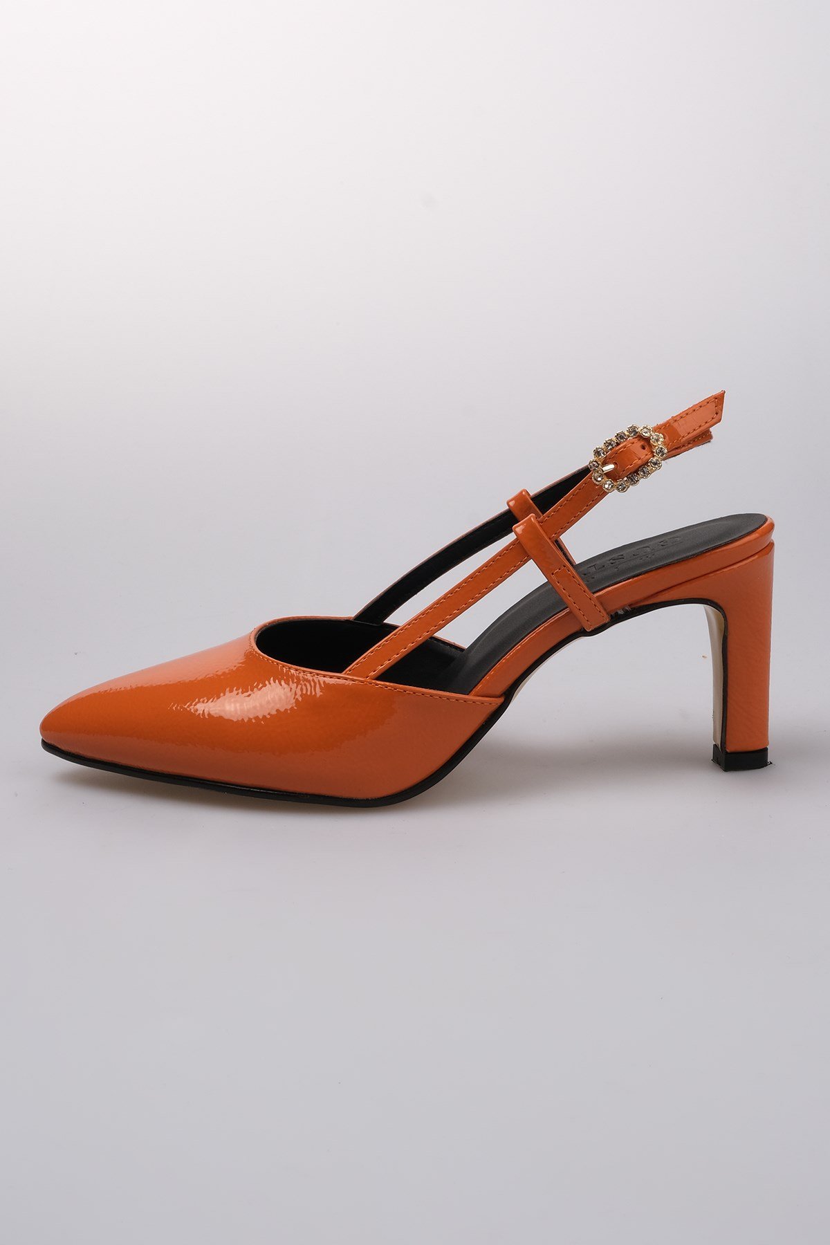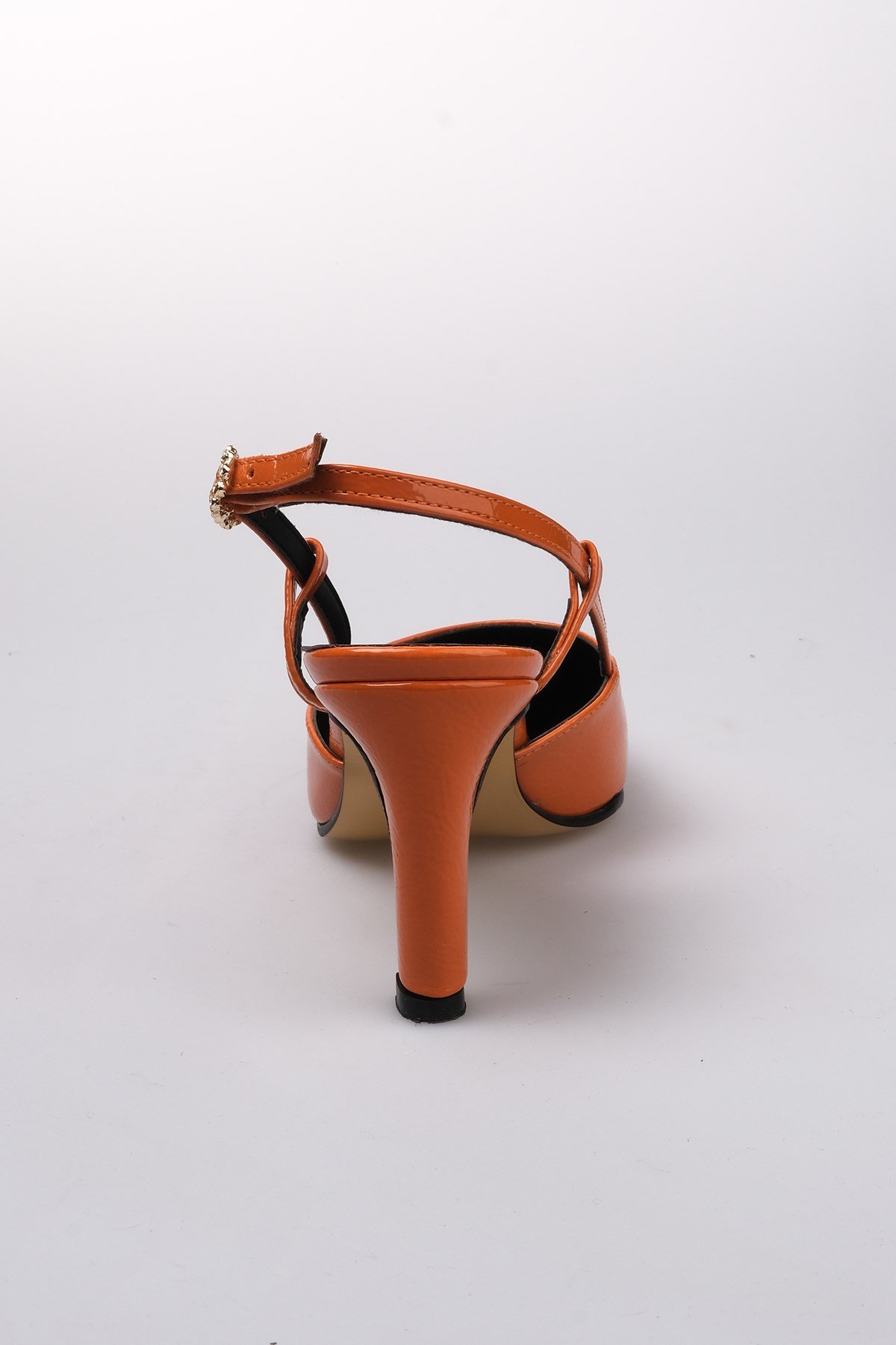 • Turuncu Renk Kırışık Rugan, Arkası Açık Topuklu Ayakkabı