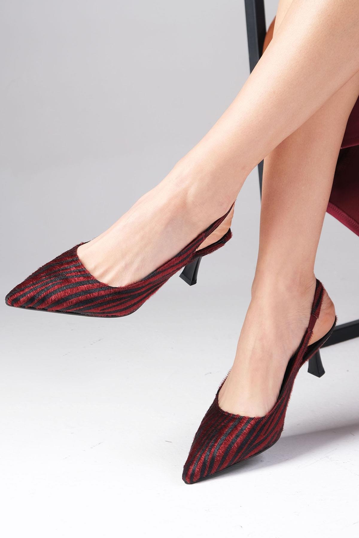 • Bordo  Zebra Desenli, Arkası Açık,Topuklu Kadın  Ayakkabı