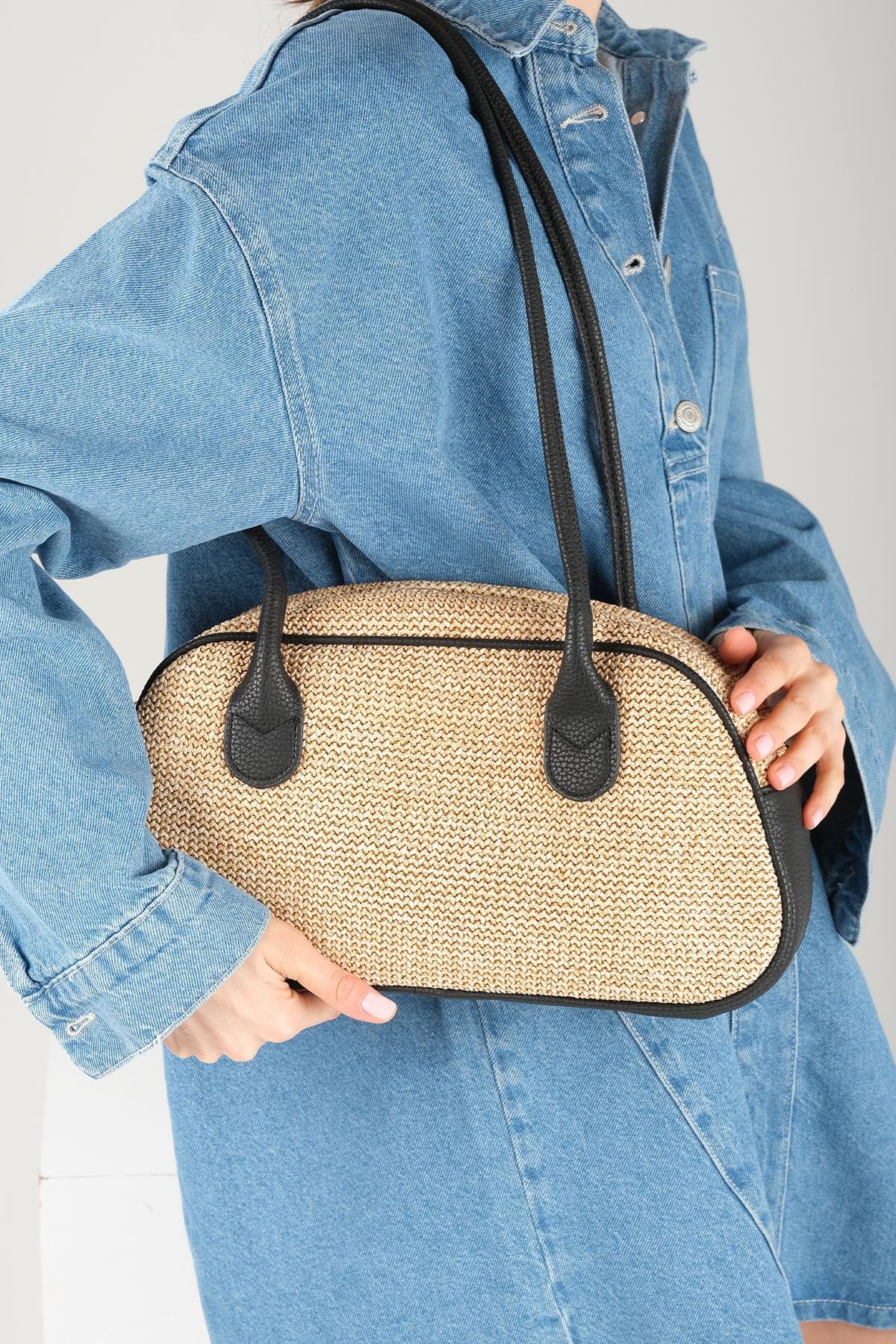 Yaz mevsiminin enerjisini stilinize taşıyan bu doğal hasır omuz çantası, hem şıklığı hem işlevselliği bir arada sunuyor. El işçiliğini andıran örgü dokusu ve siyah detaylarla modernleştirilmiş tasarımı sayesinde şehir yaşamında, sahilde veya tatilde rahatlıkla kullanılabilir.