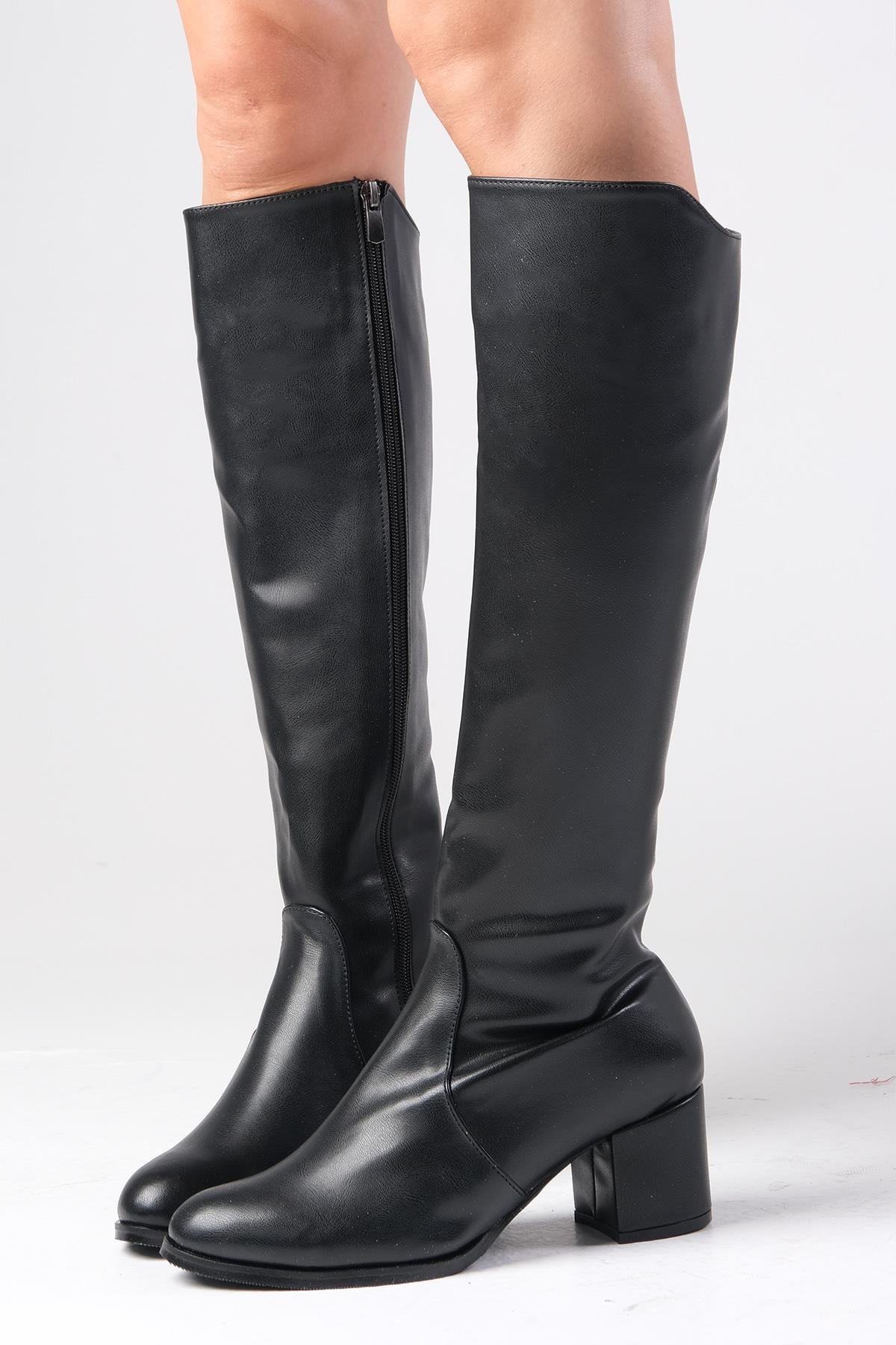 Bella Siyah Renk Fermuarlı Çizme (02020BLC)
