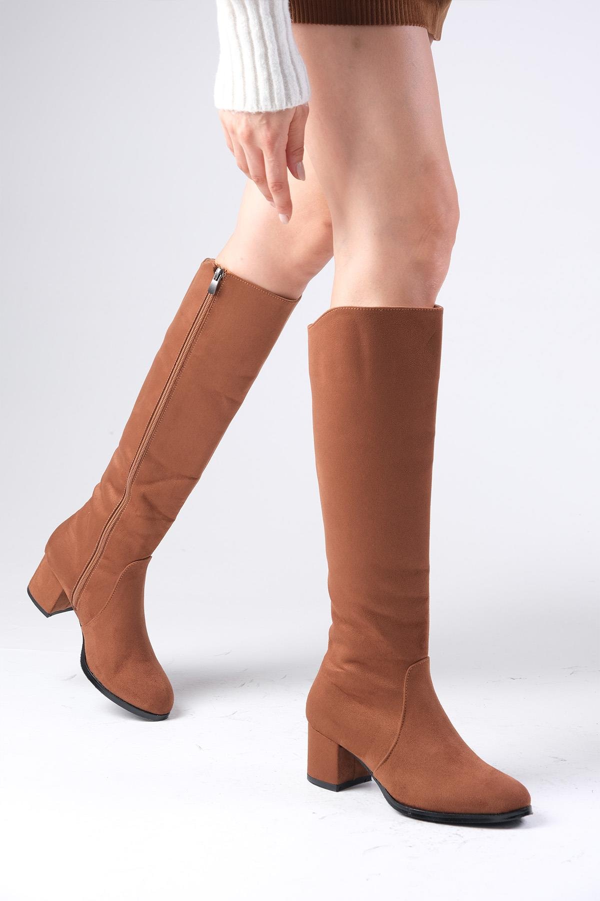 Bella Taba Renk Süet Fermuarlı Çizme (02020TAS)