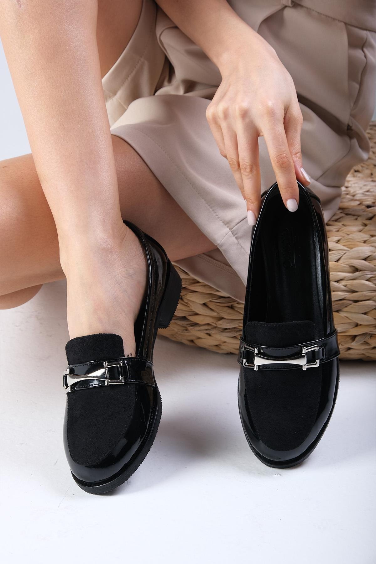 Bernice Siyah Renk Rugan Oxford Ayakkabı (02108BLR)