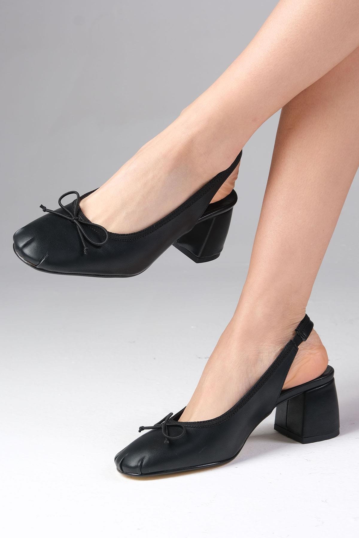 • Siyah Renk, Arkası Açık,Topuklu Kadın  Ayakkabı