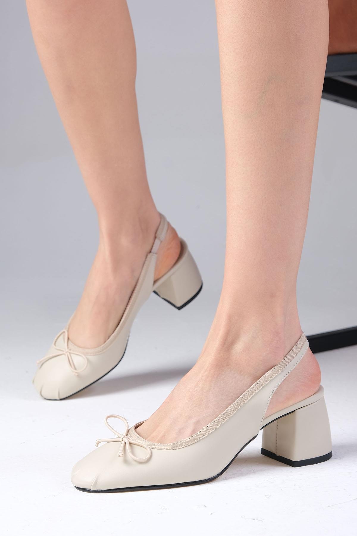 • Ten Renk,Fiyonk Detaylı, Arkası Açık,Topuklu Kadın  Ayakkabı