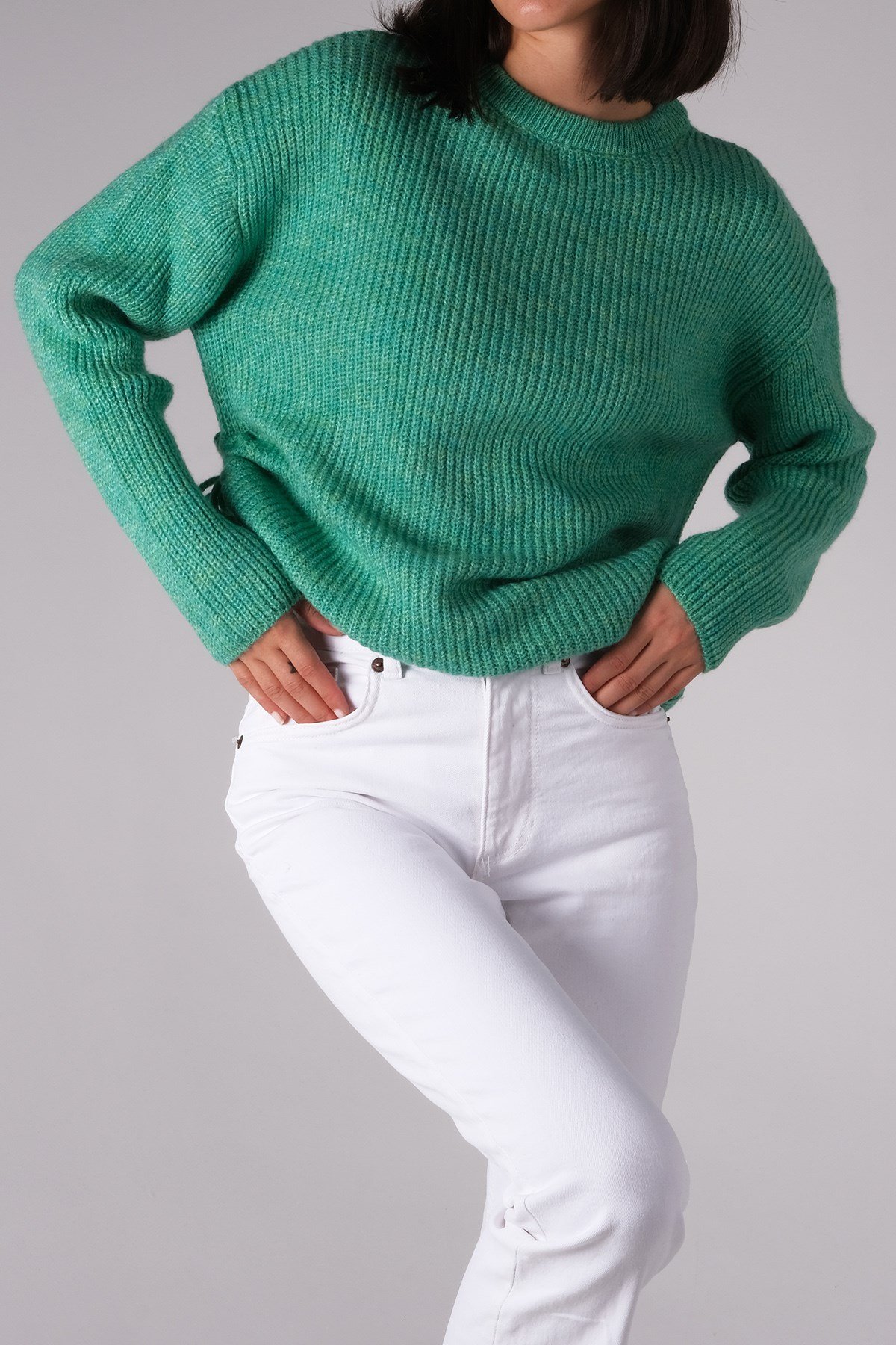 Bisiklet Yaka, Ekru Renk,Yandan Yırtmaçlı, Kadın Triko Kazak
