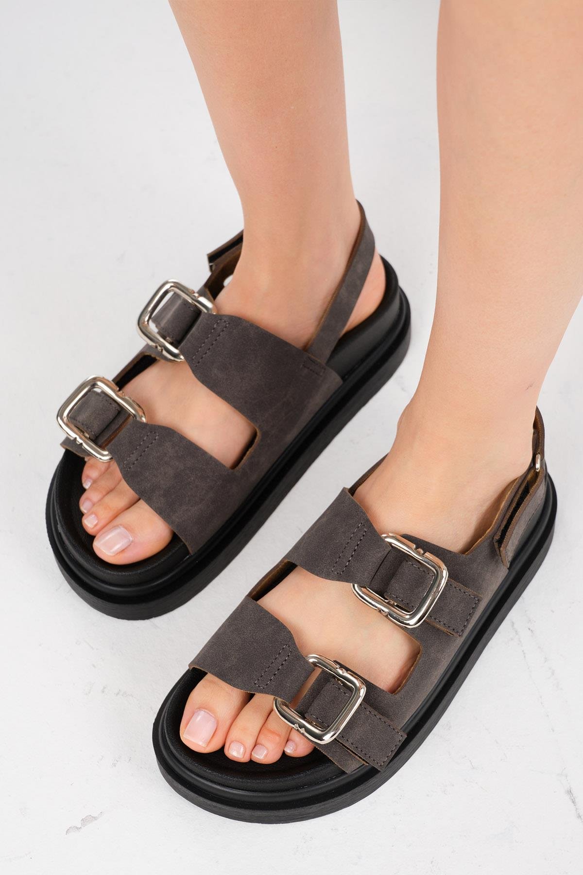 Misha Antrasit Çift Tokalı Sandalet (01614ATS)