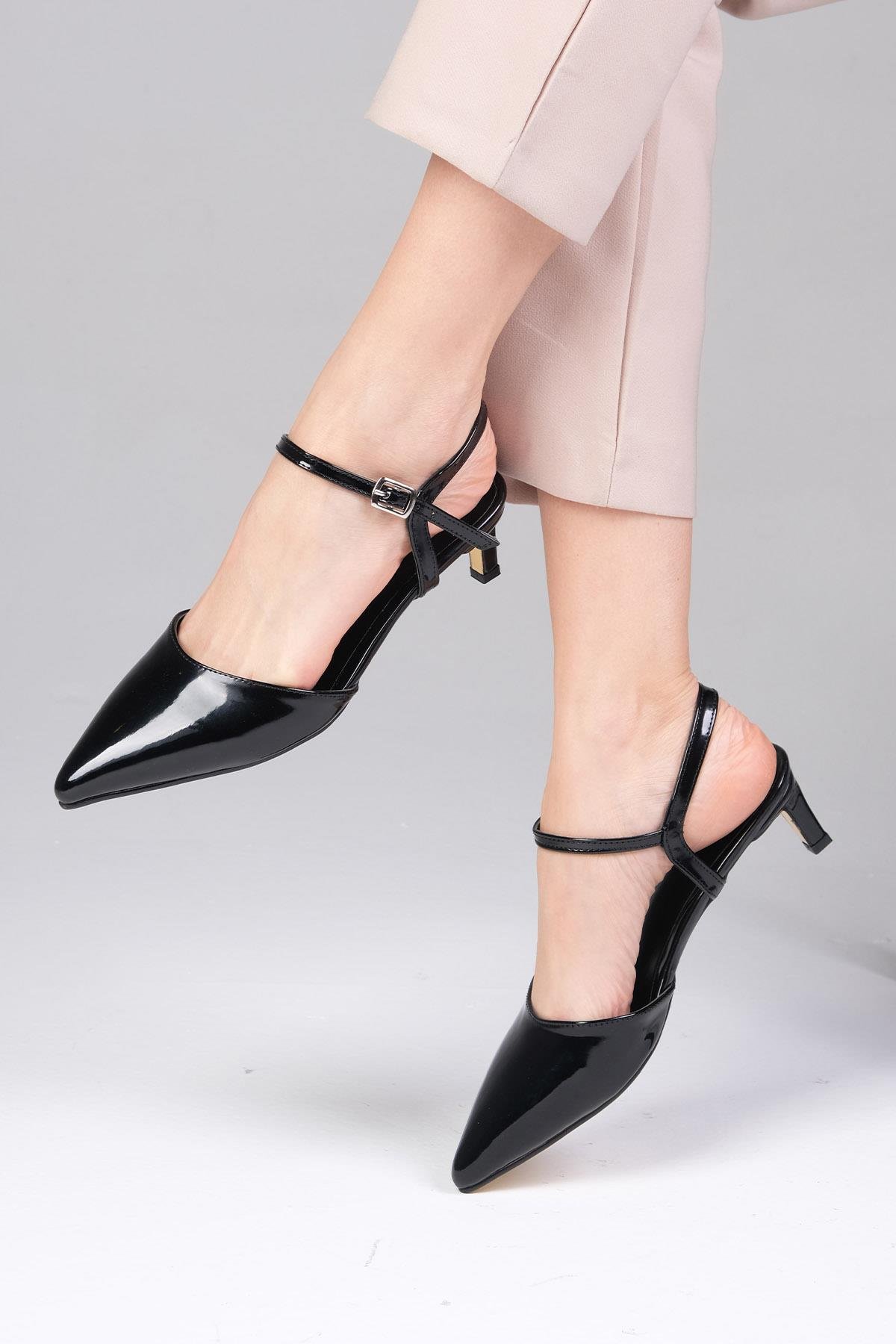 • Siyah Renk, Rugan Sivri Burunlu, Topuklu Ayakkabı