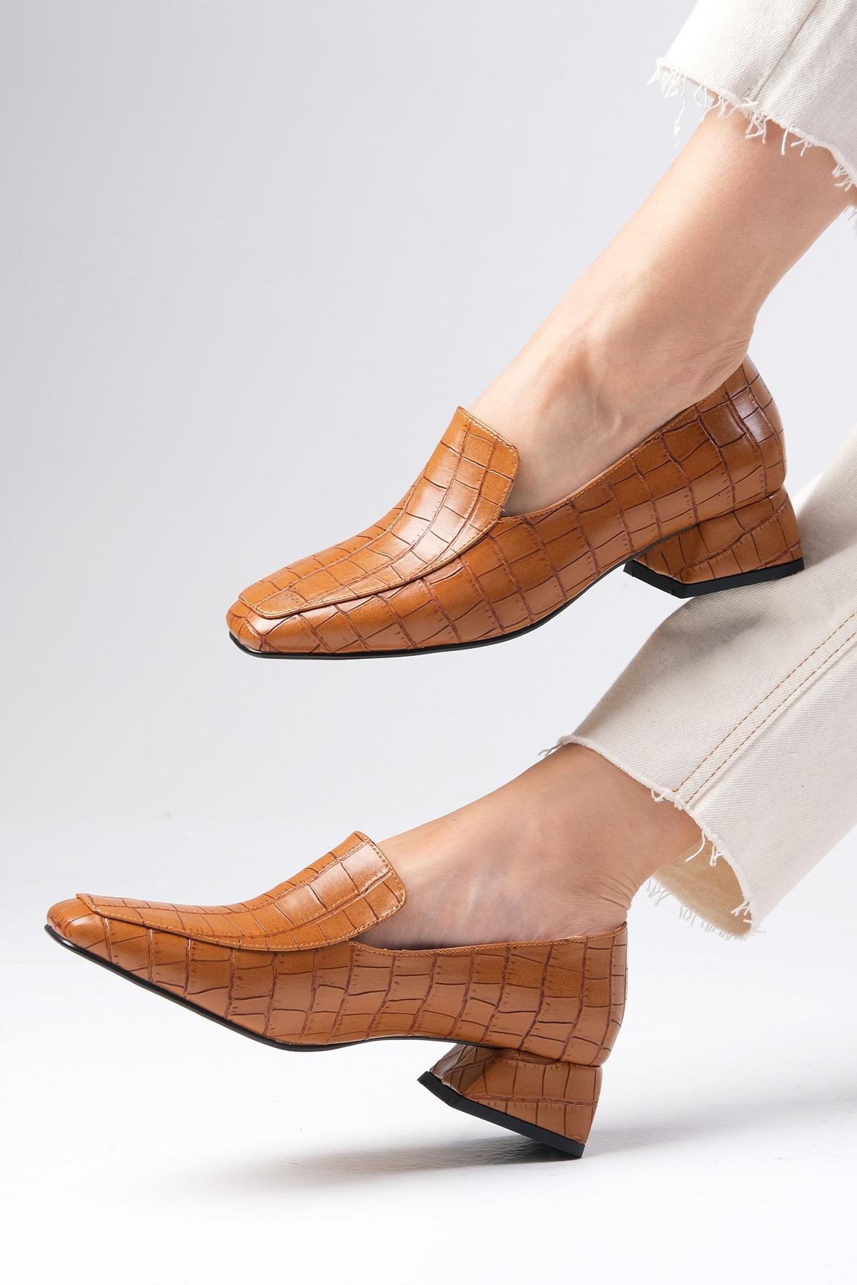 Gaia Taba Renk Hayvan Desenli Kısa Topuklu Ayakkabı (01559TAV)