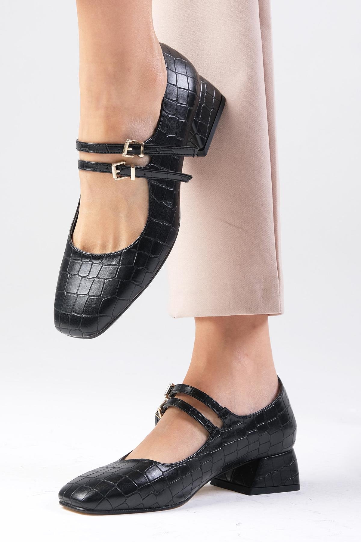 Giorgia Siyah Renk Kısa Topuklu Ayakkabı (01558BLV)