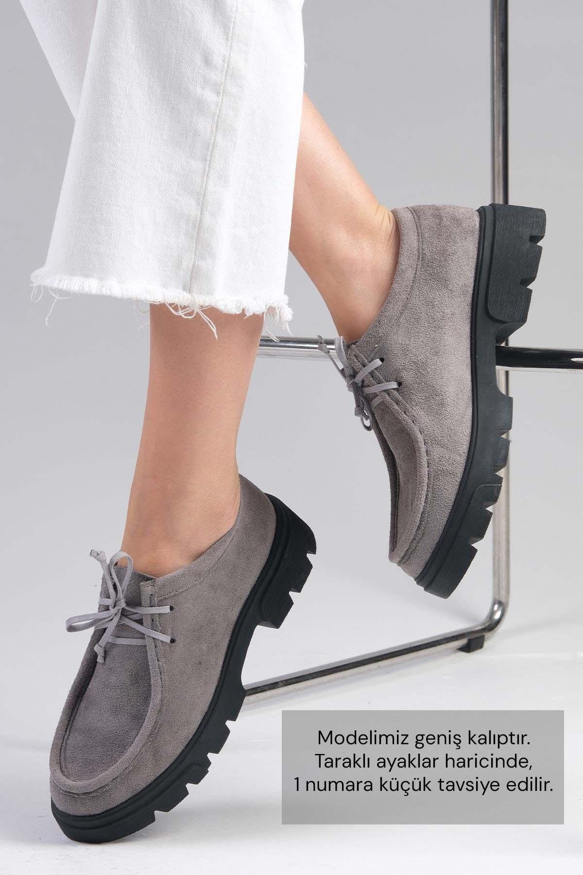 Hope Gri Renk Kalın Tabanlı Oxford Ayakkabı (01511GRS)