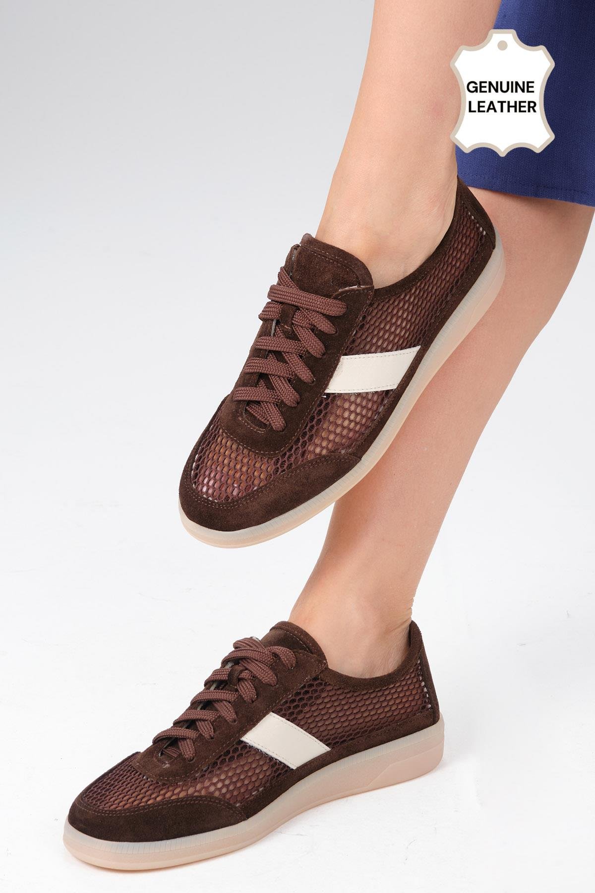 Modern tasarımı ve nefes alabilir yapısıyla öne çıkan bu kahverengi spor ayakkabı, günlük kullanımda maksimum konfor sunar. File detayları sayesinde ayağınız gün boyu hava alır, yumuşak tabanı ise yürüyüşlerinizi destekler. Yan kısmındaki beyaz şerit detayı ise ayakkabıya sportif bir şıklık katıyor. Hem şehir hayatında hem de hafif aktivitelerde rahatlıkla kullanılabilir.