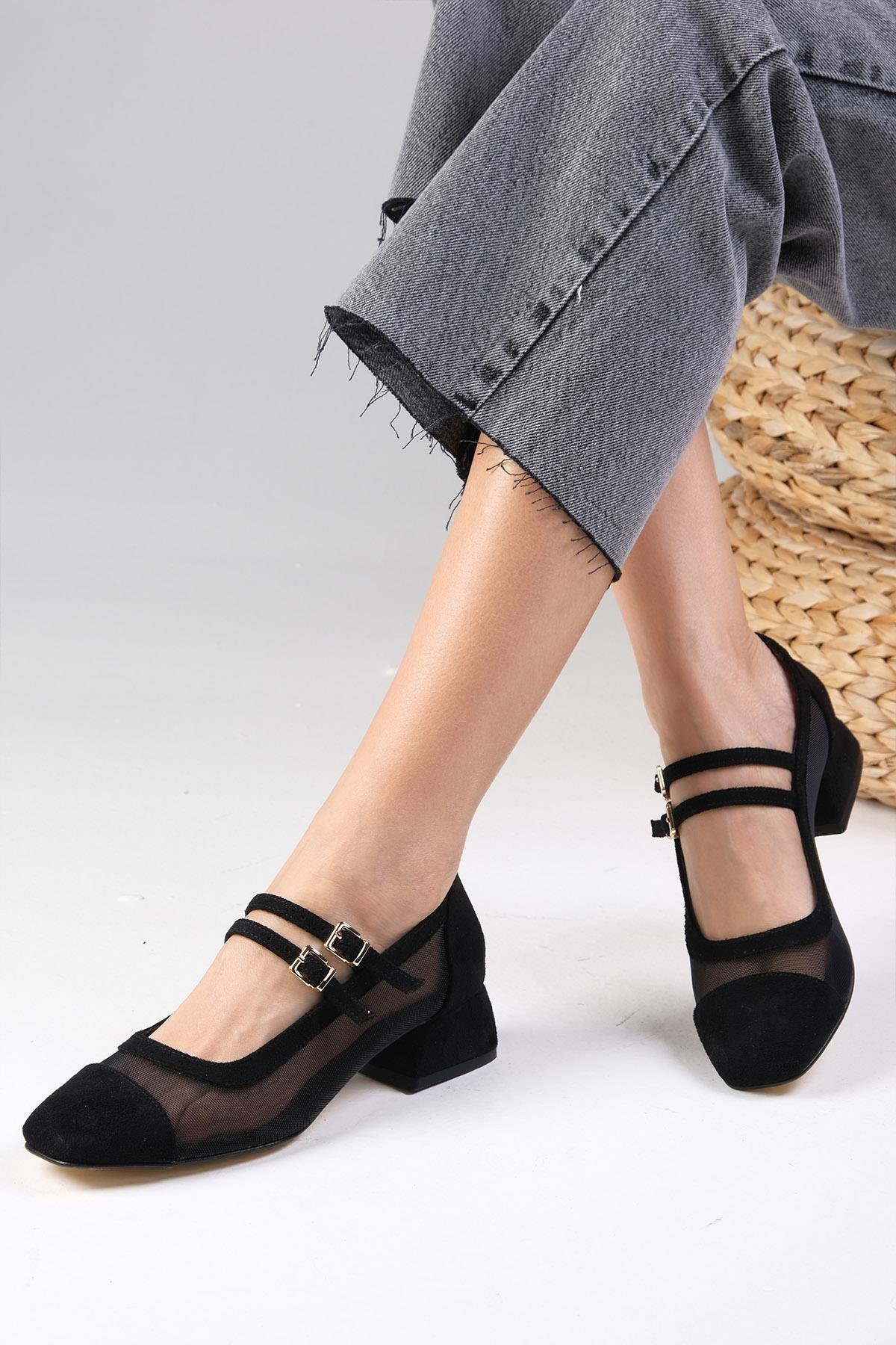 Isabel Siyah Renk Kısa Topuklu Ayakkabı (01523BLS)