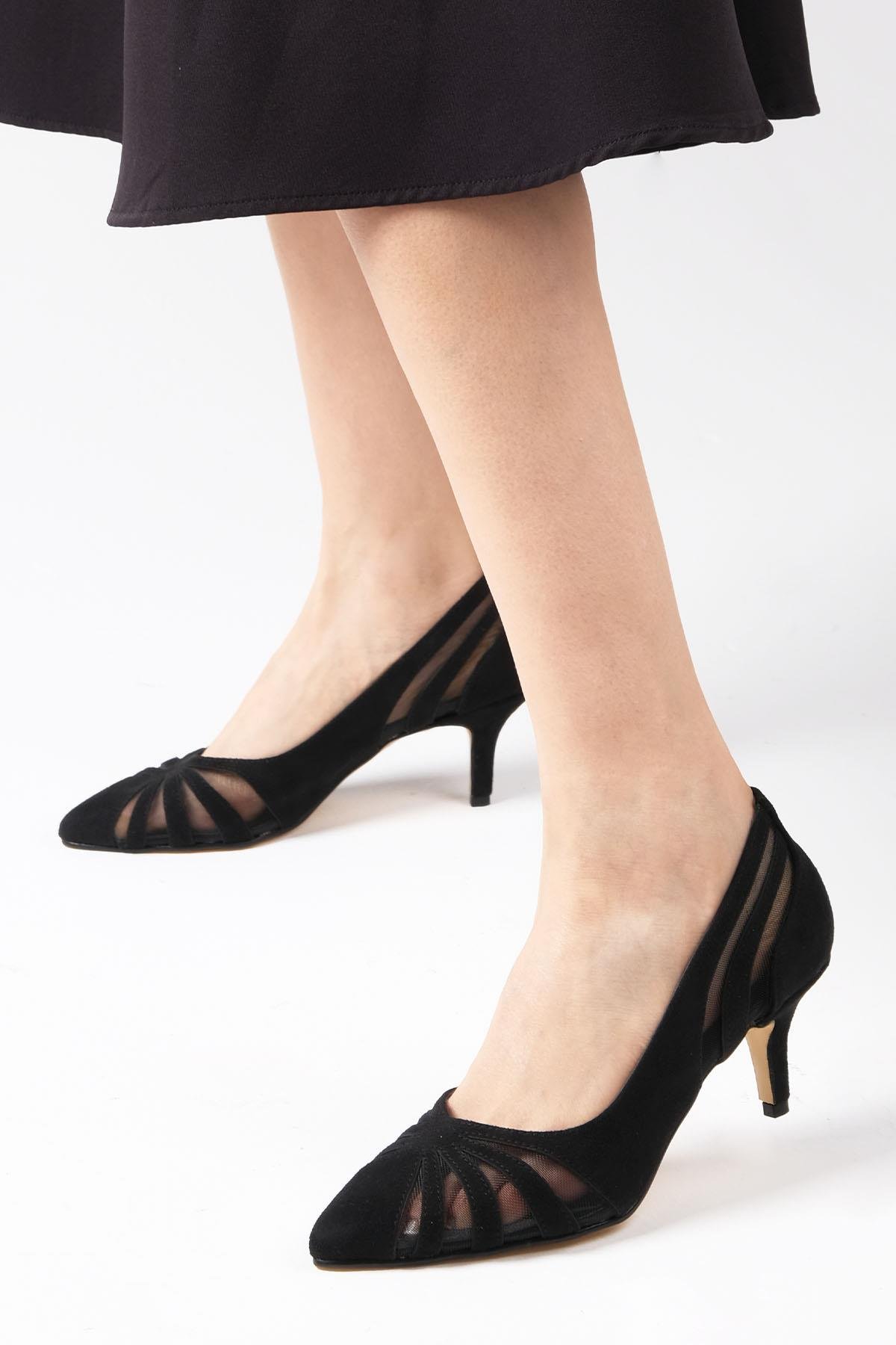 Liana Siyah Renk Kısa Topuklu Ayakkabı (02249BLS)