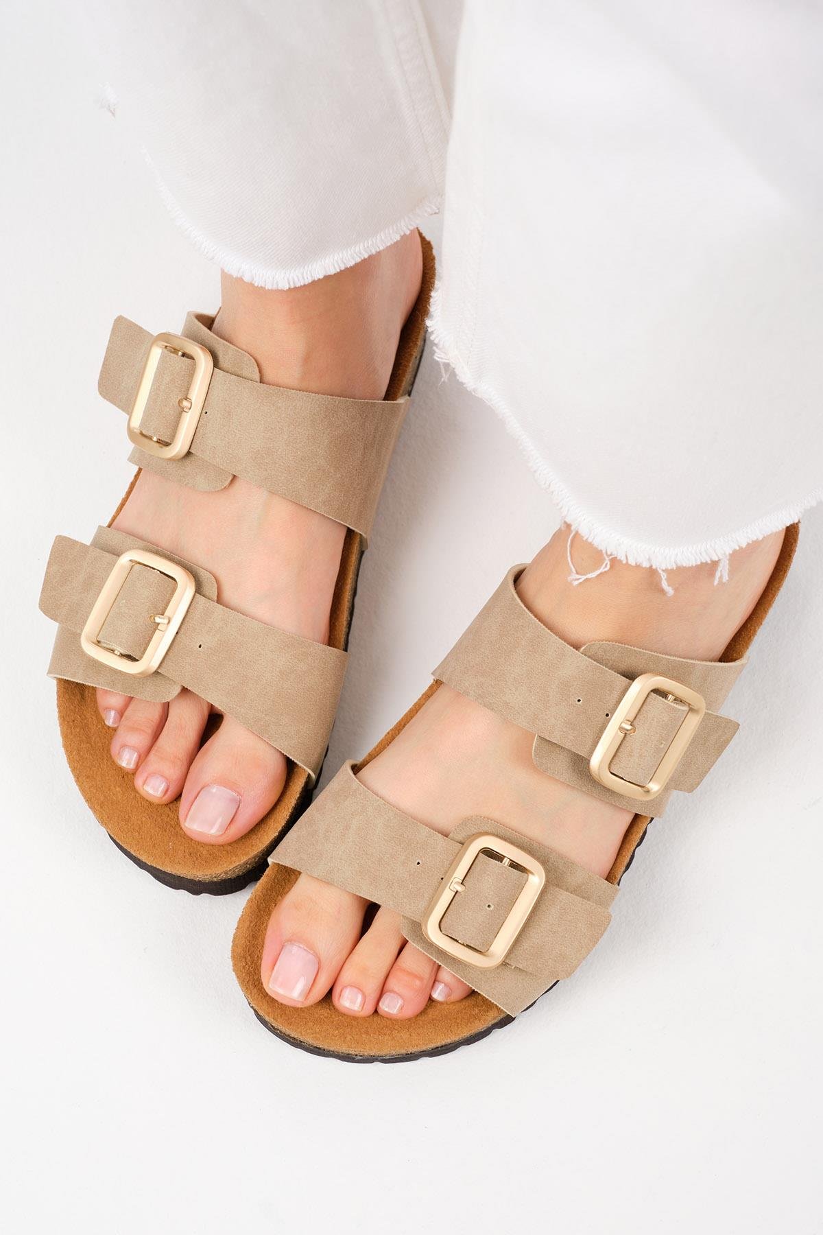 Hem şıklığı hem de konforu bir arada sunan bu kadın sandalet modeli, ortopedik  mantar tabanı ve yumuşak süet yüzeyiyle dikkat çeker. Ayarlanabilir çift tokalı bantları sayesinde ayağınıza tam uyum sağlar. Ergonomik yapısı ile uzun süreli kullanımlarda bile maksimum rahatlık sunar.