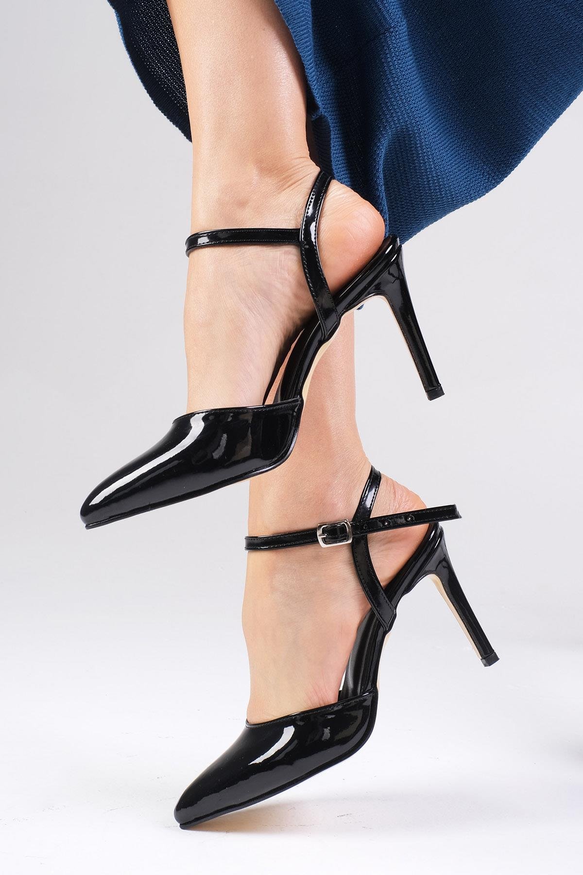 Lucia Siyah Renk Rugan Bilek Bantlı Topuklu Ayakkabı (02165BLR)
