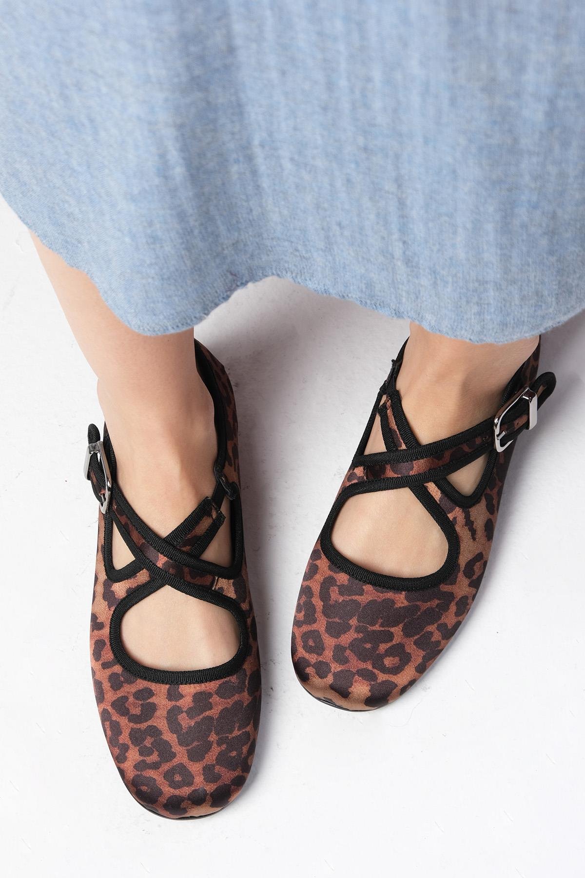 • Leopar Desenli, Çapraz Bantlı, Kadın Babet Ayakkabı