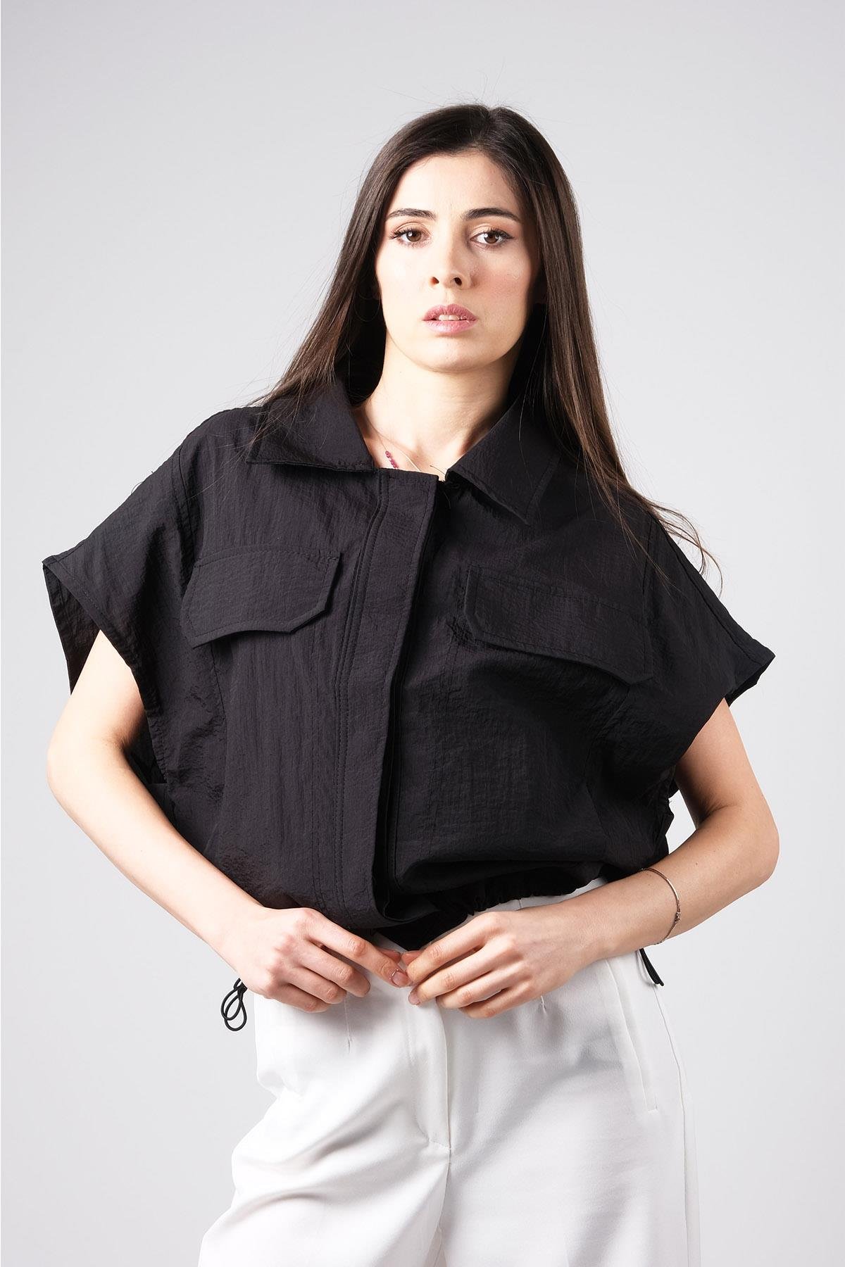 Siyah Renk, Cep Detaylı, Kumaş Kadın Paraşüt Yelek