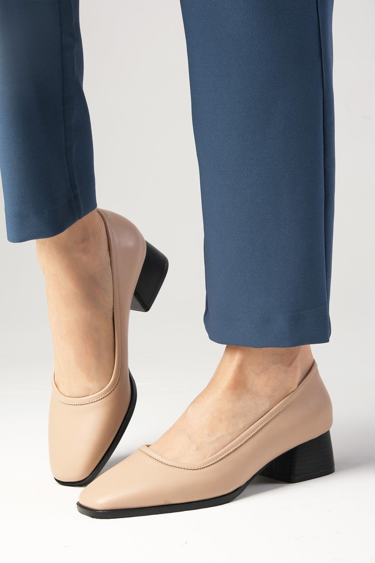 Mona Bej Renk Kalın Tabanlı Kısa Topuklu Ayakkabı (01502BEC)