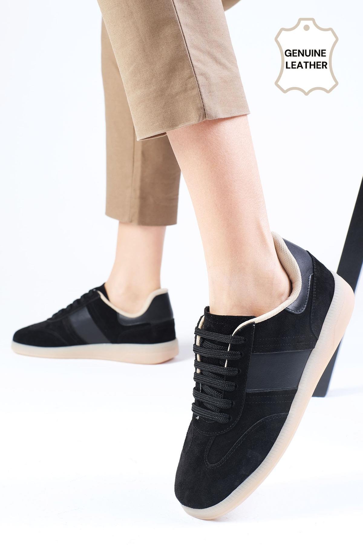 Nicole Hakiki Süet Siyah Renk Spor Ayakkabı (01582BLS)