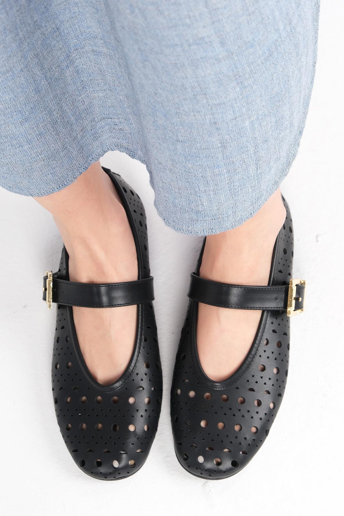• Siyah Renk, Lazerli, Kadın Babet Ayakkabı