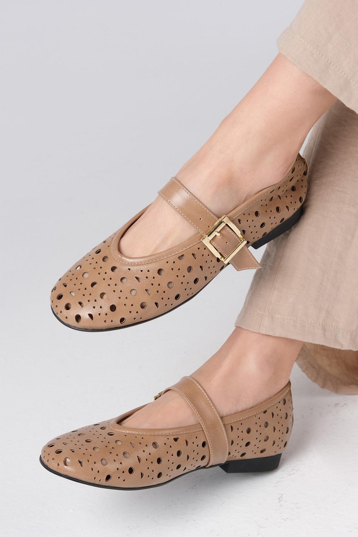 • Vizon Renk, Lazerli, Kadın Babet Ayakkabı