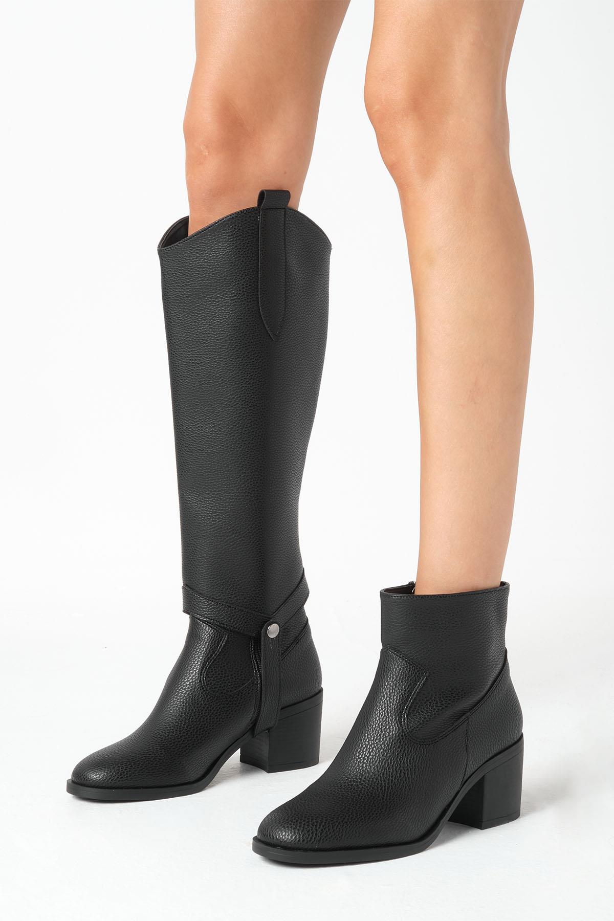 • Şıklık ve fonksiyonelliği bir arada sunan bu model, ister uzun çizme ister kısa bot olarak kullanılabilen özel tasarımıyla dolabınızın en kurtarıcı parçası olacak. Hakiki deri görünümündeki dokusu, sağlam topuğu ve rahat kalıbıyla gün boyu konfor sağlarken; farklı kombinler için kolayca uyarlanabilir yapısıyla öne çıkıyor.