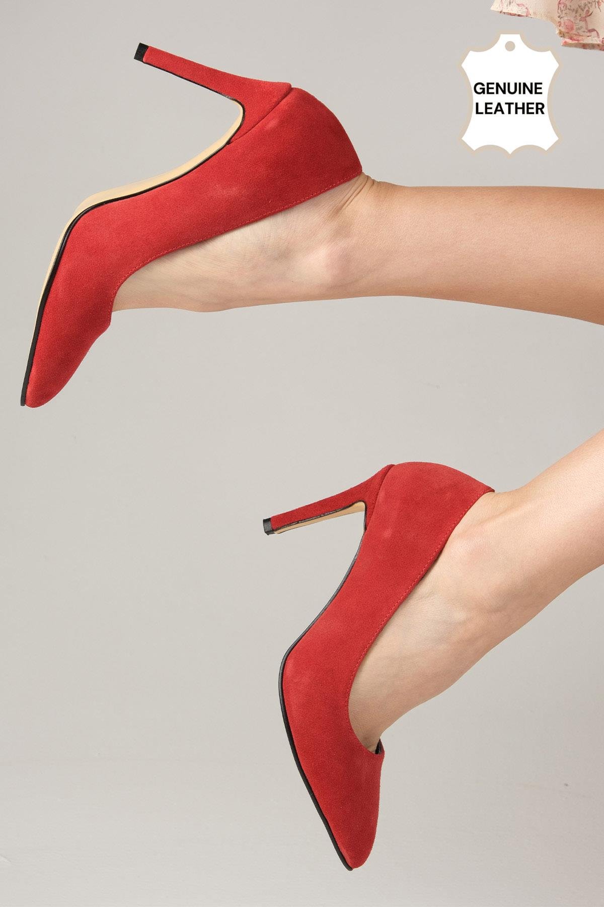 Dışı %100 Hakiki Süet, İçi %100 Hakiki Deri Stiletto. Üretimi tamamen 1.kalite deri, çelikli taban, astar vb. malzemeler ile yapılmış olup el işçiliği ile Türkiye'de imal edilmiştir. Topuk yüksekliği 8 cm. dir. Tam kalıptır.
