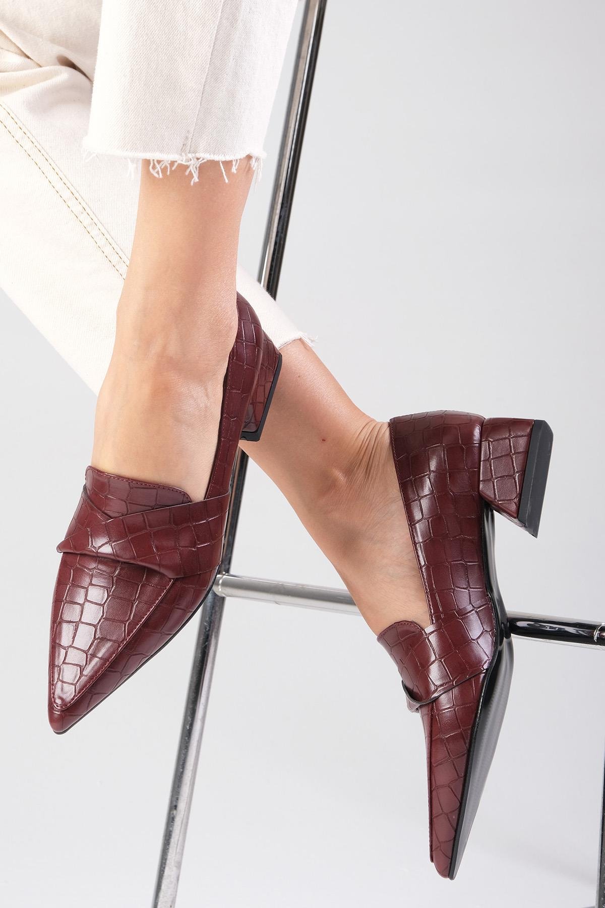 Vilda Bordo Renk Kısa Topuklu Ayakkabı (01564WRV)