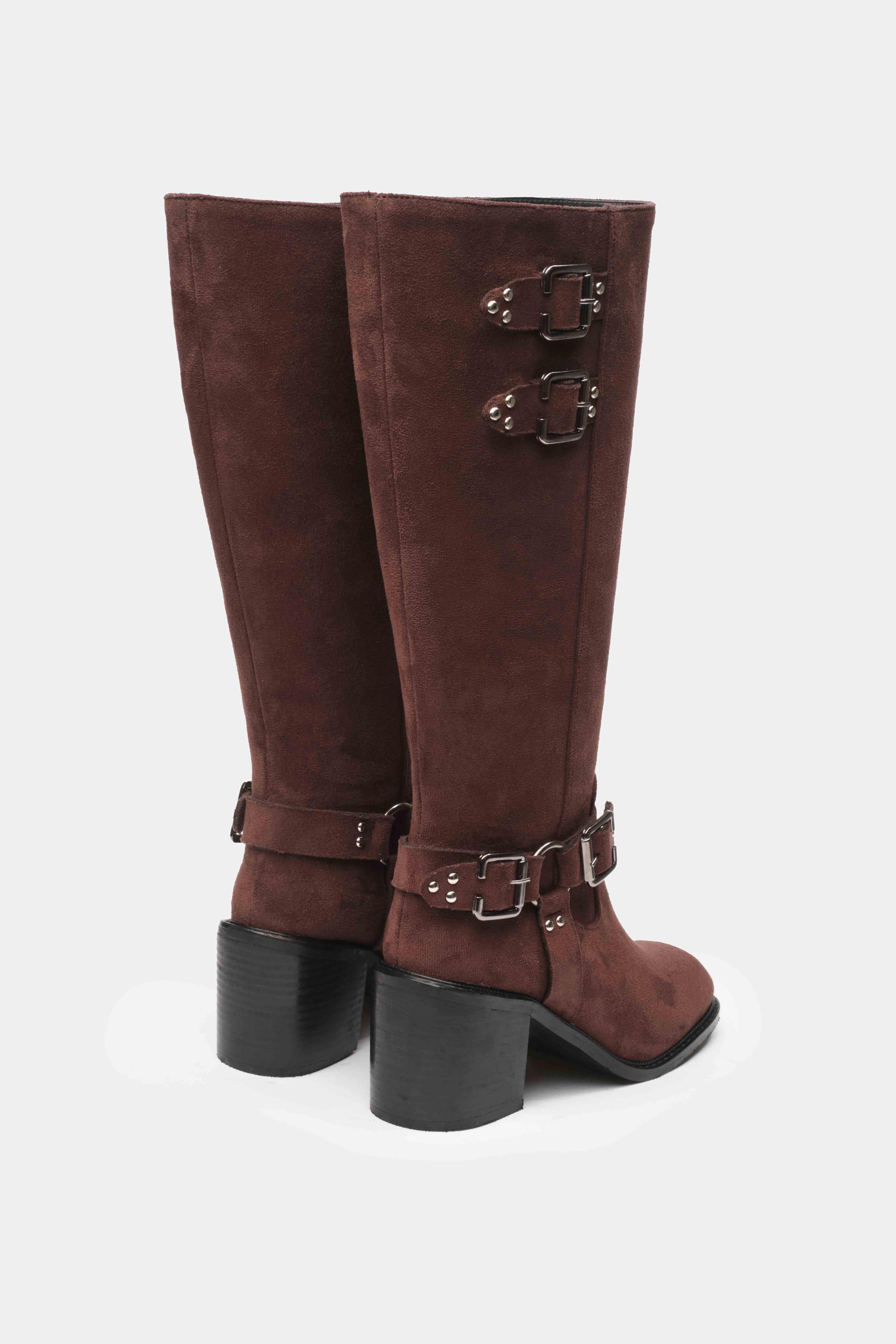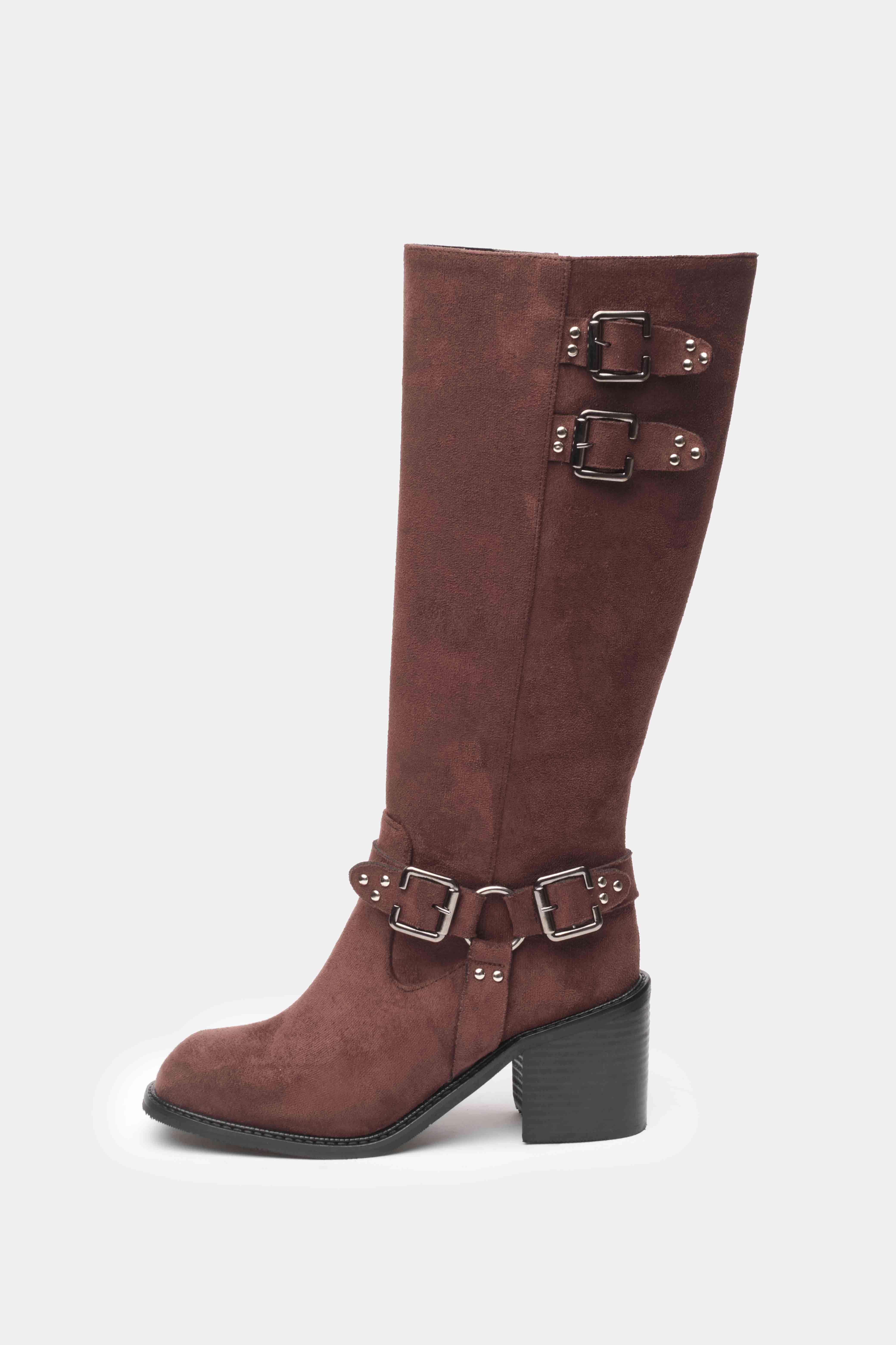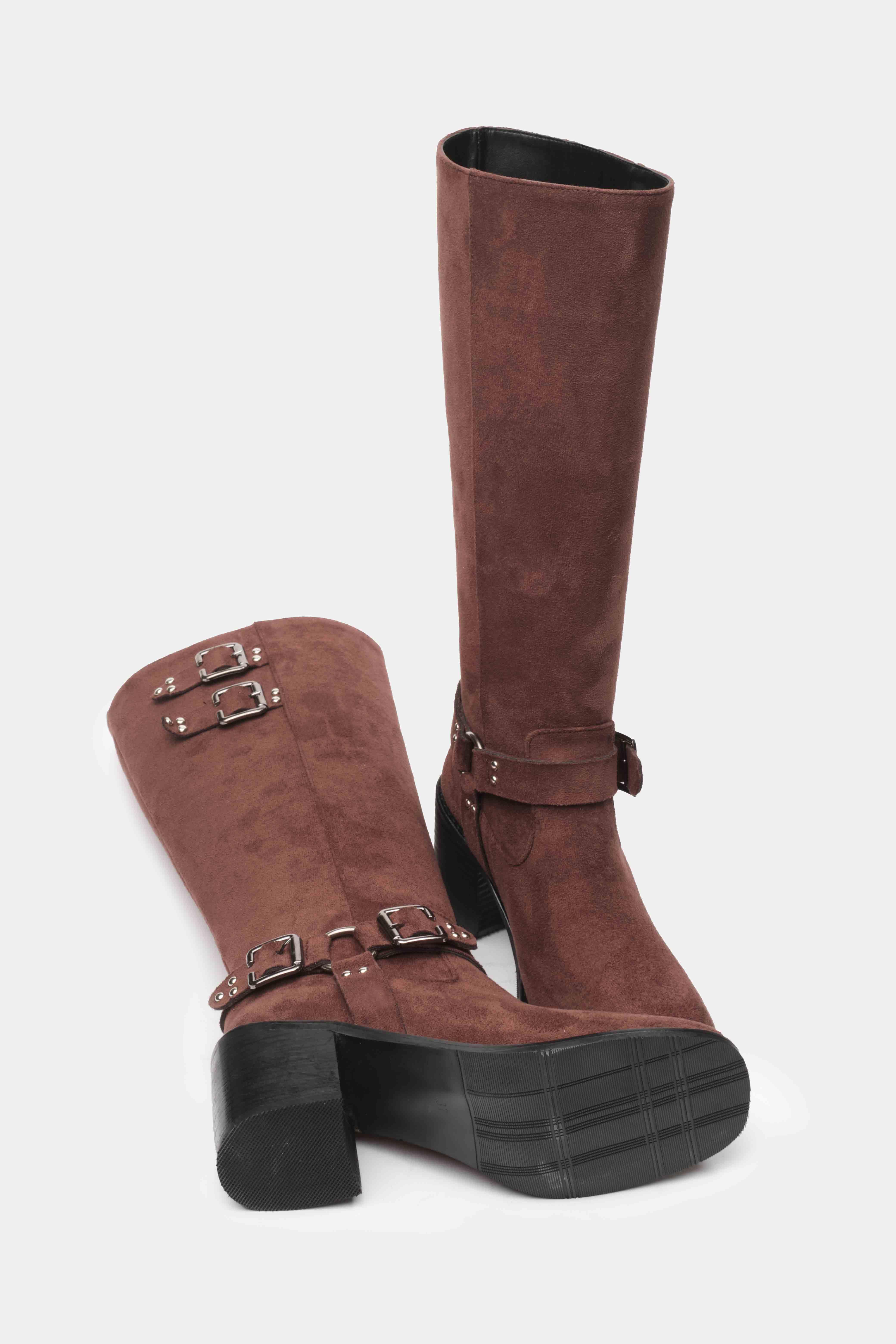 Şıklığı ve rahatlığı bir arada sunan kahverengi uzun topuklu kadın çizme, iddialı tasarımıyla stilinize güçlü bir dokunuş katar. Üst kısmındaki çift tokalı kayış detayı ve bilekte yer alan metal halkalı kemer süslemeleri, çizmenin modern ve rock tarzını ön plana çıkarır.
