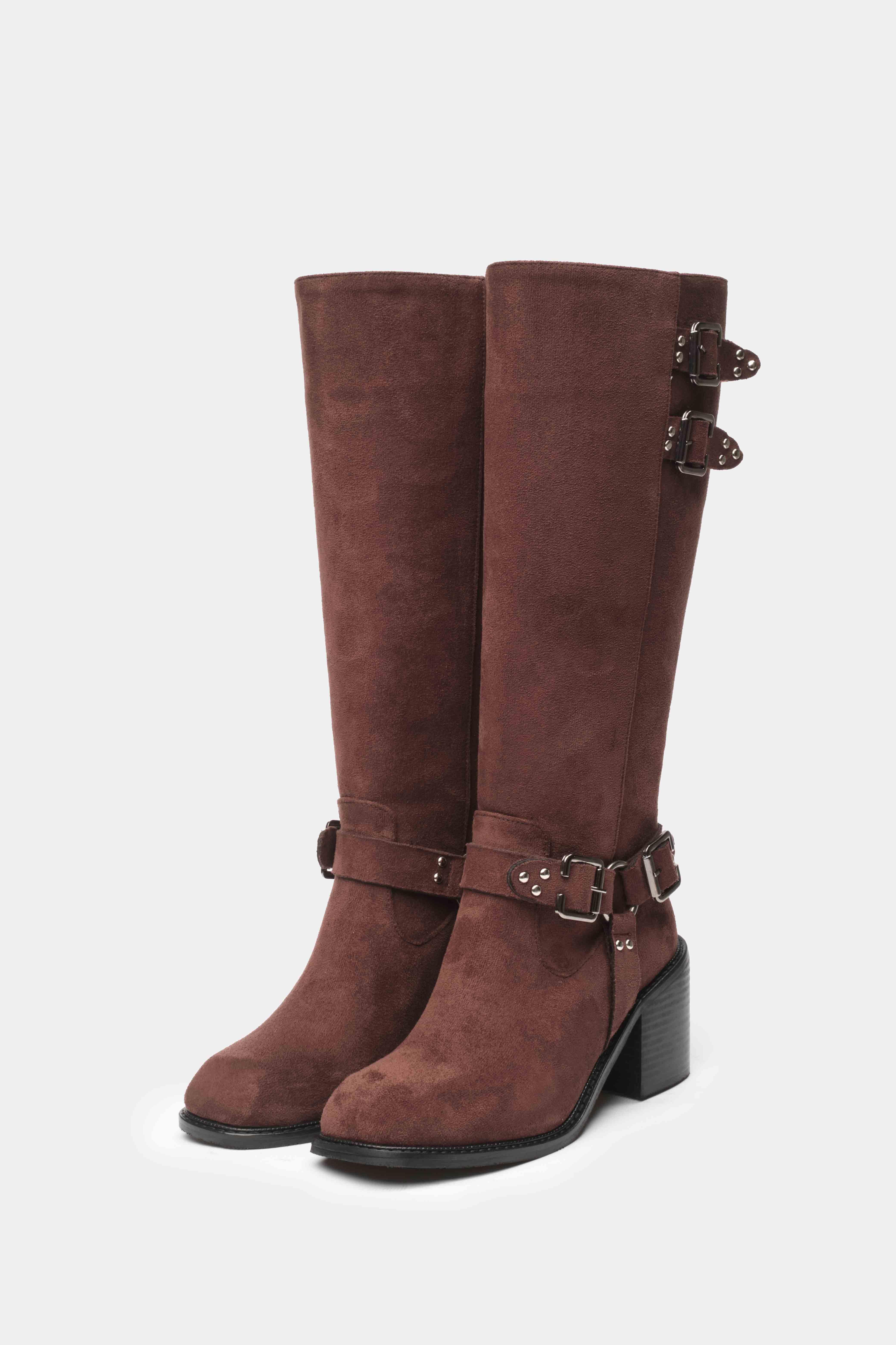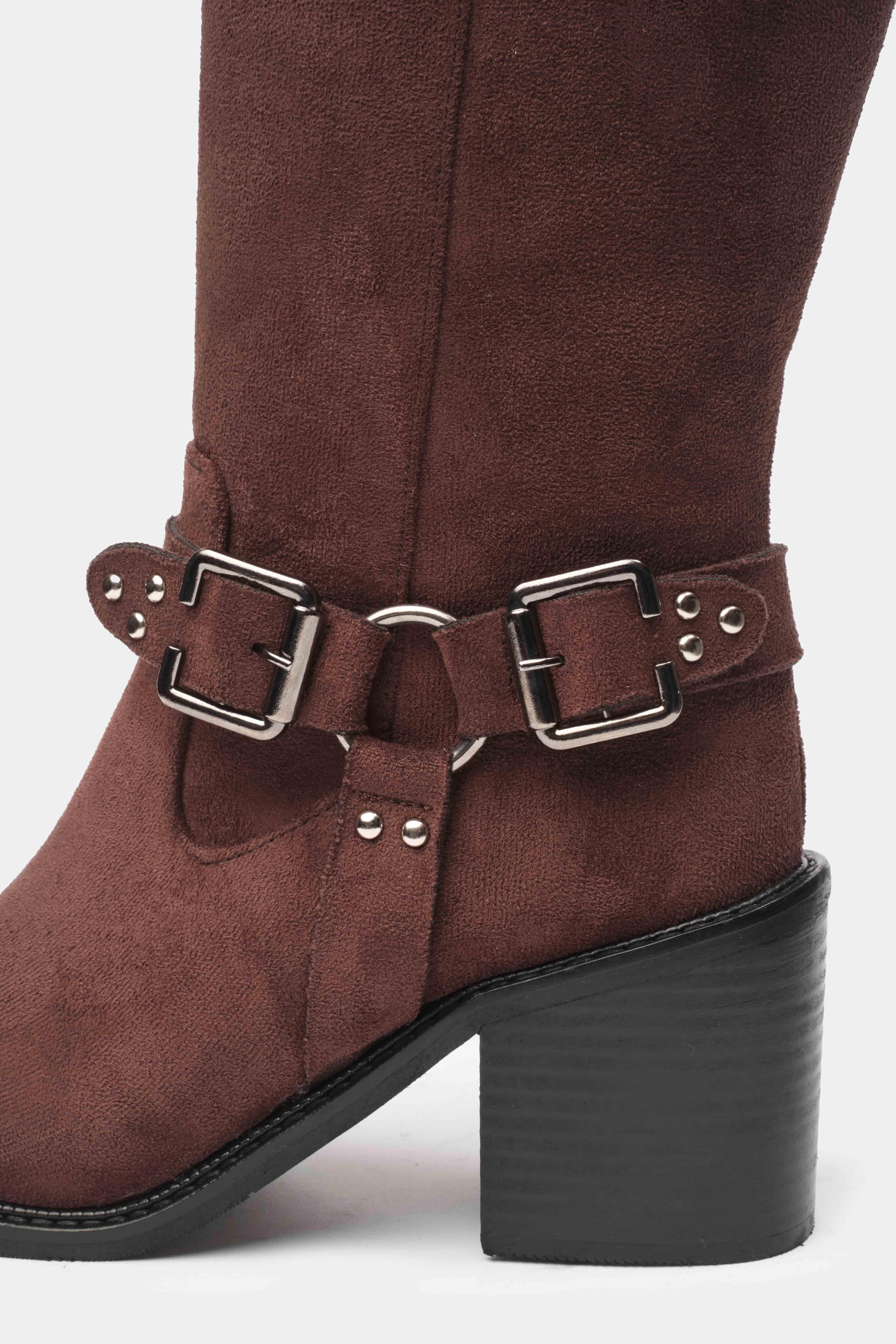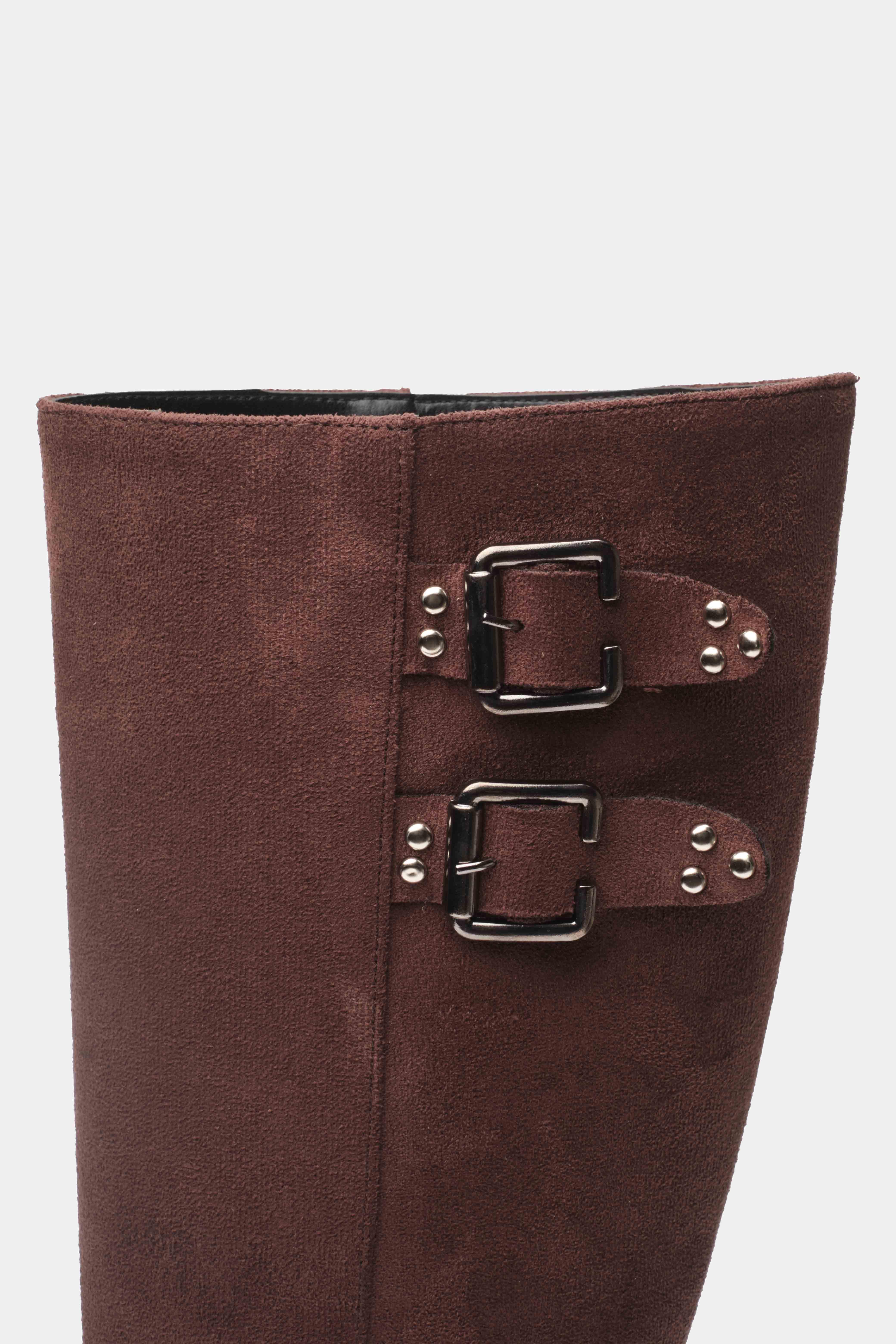 Şıklığı ve rahatlığı bir arada sunan kahverengi uzun topuklu kadın çizme, iddialı tasarımıyla stilinize güçlü bir dokunuş katar. Üst kısmındaki çift tokalı kayış detayı ve bilekte yer alan metal halkalı kemer süslemeleri, çizmenin modern ve rock tarzını ön plana çıkarır.